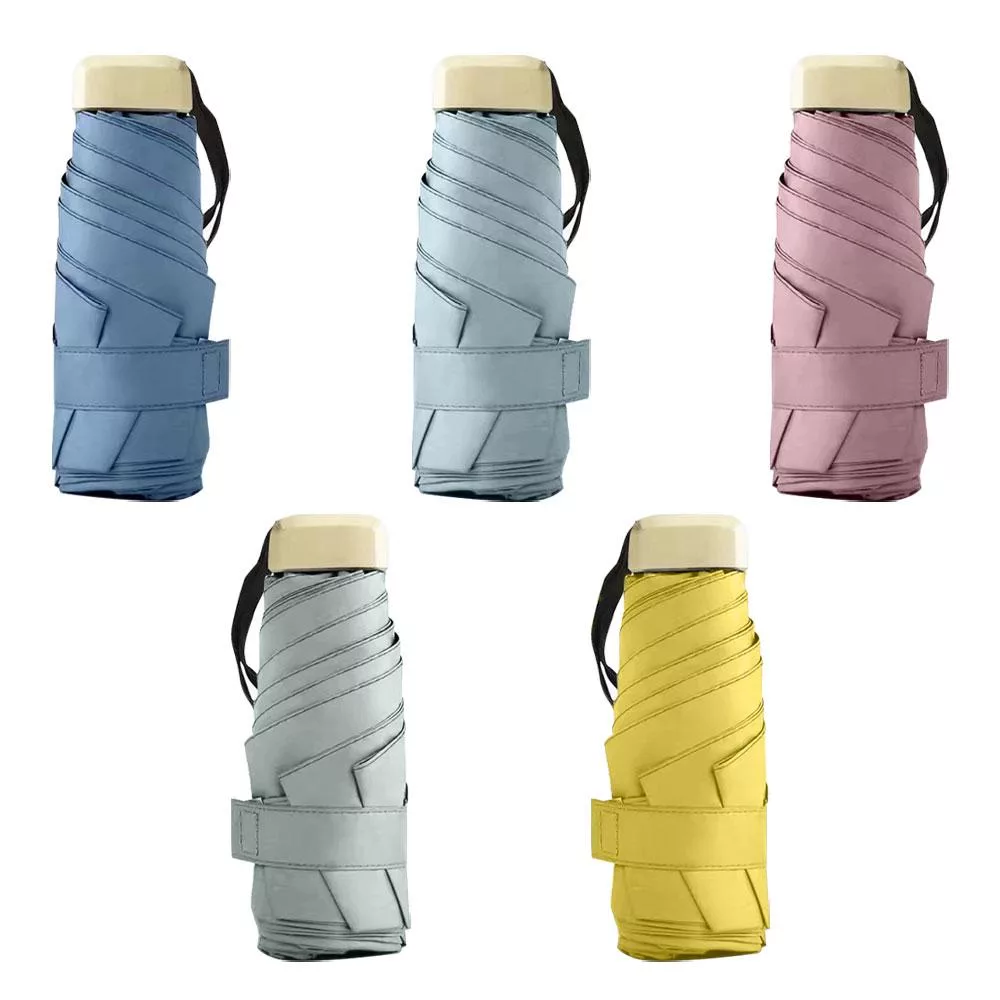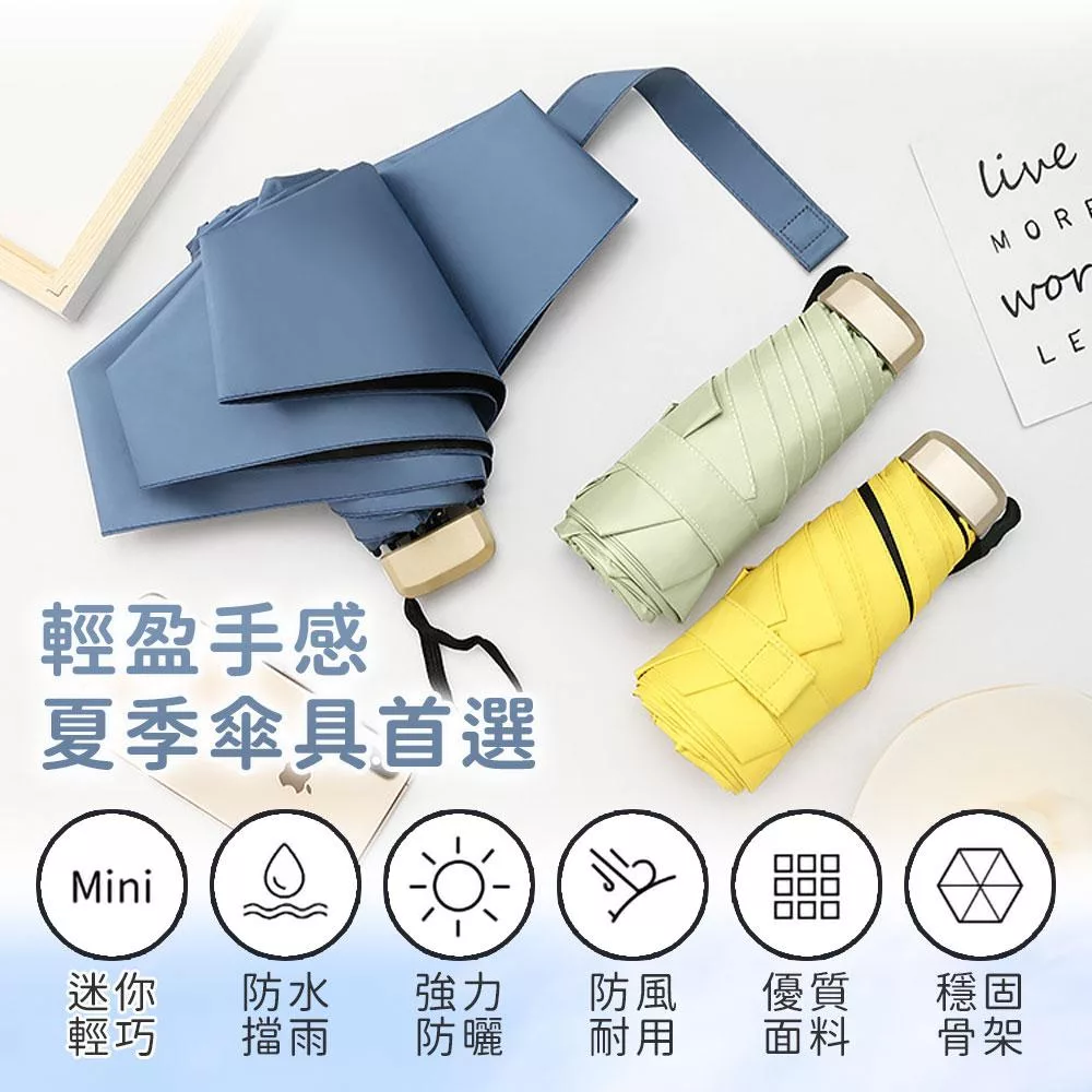 【Timo】莫蘭迪色系 抗UV迷你防曬遮陽折疊晴雨傘- 蔚藍色