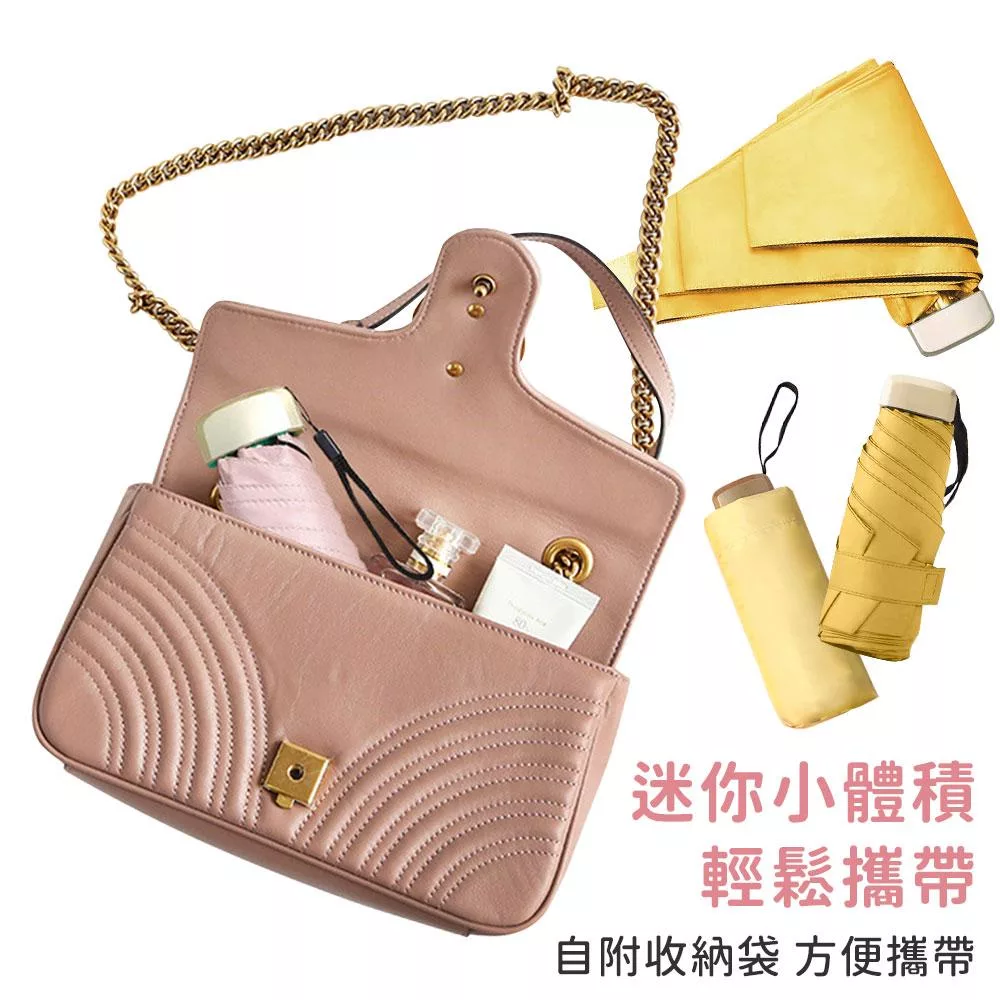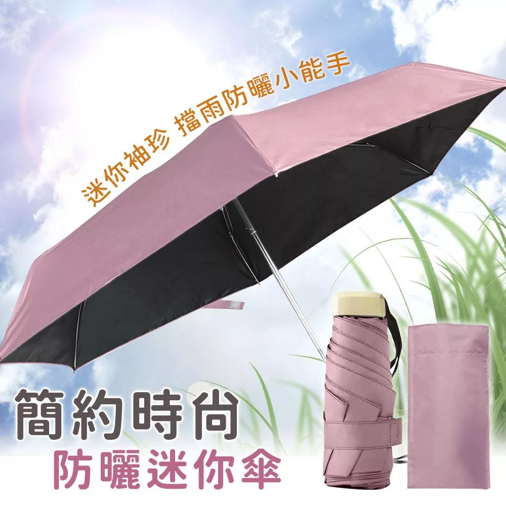 【EZlife】黑膠袖珍五折遮陽傘 粉色