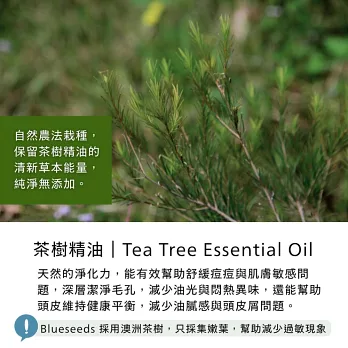 ✔ 茶樹精油:淨化毛孔、調理肌膚,改善肌膚出油與悶熱異味。