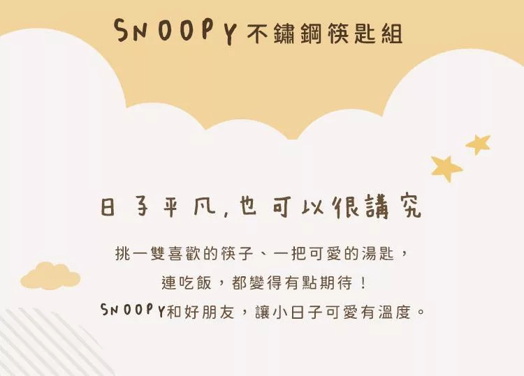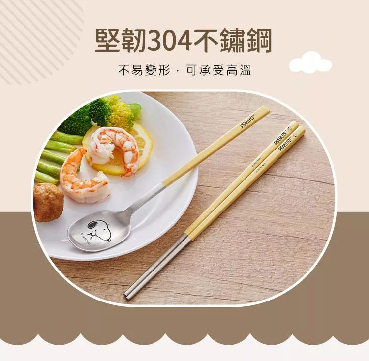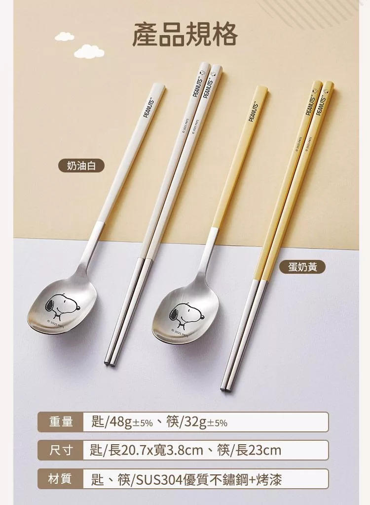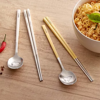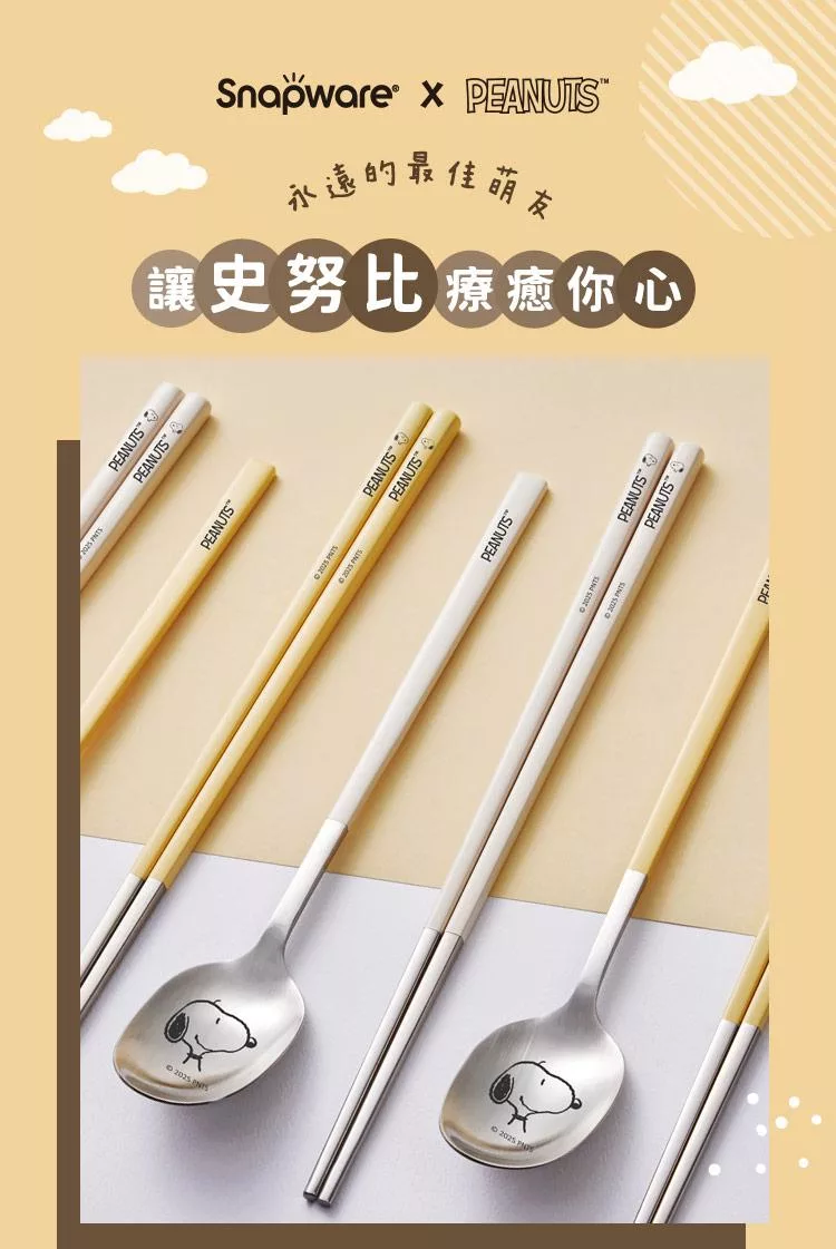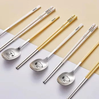 【美國康寧】Snapware Snoopy 不鏽鋼匙筷組- 大頭款/黃色