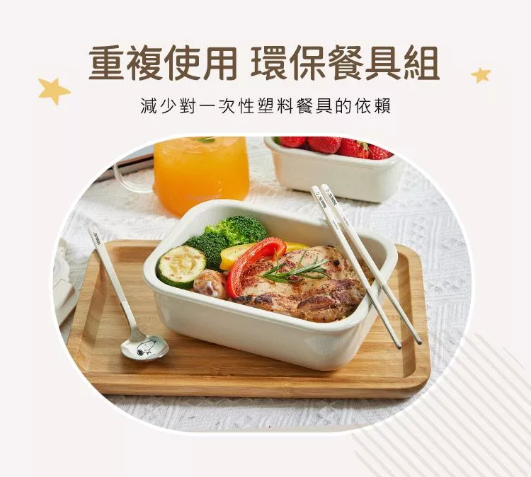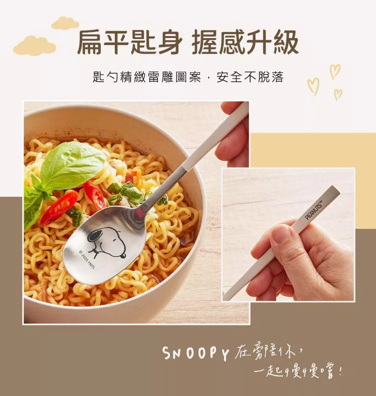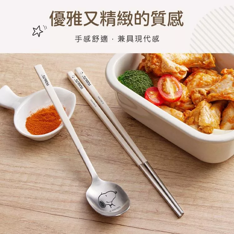 【美國康寧】Snapware Snoopy 不鏽鋼匙筷組- 大笑款/白色