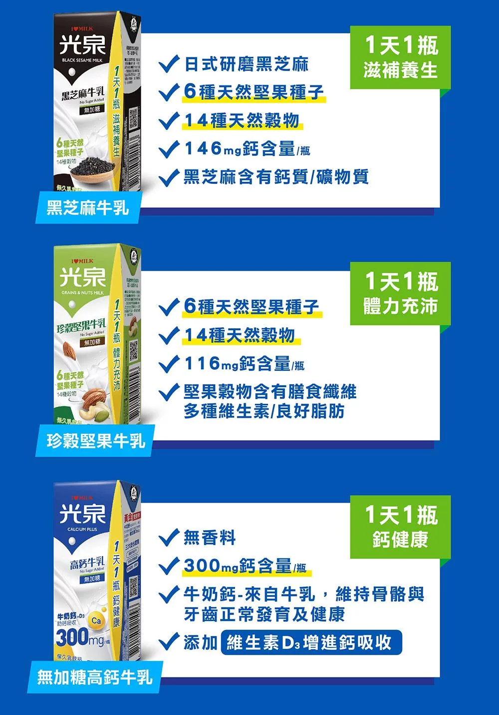| ★50%以上乳含量 ★每瓶含有300mg鈣含量 ★口感滑順美味可口 ★無菌包裝,絕不添加防腐劑 ★「無加糖」,健康無負擔