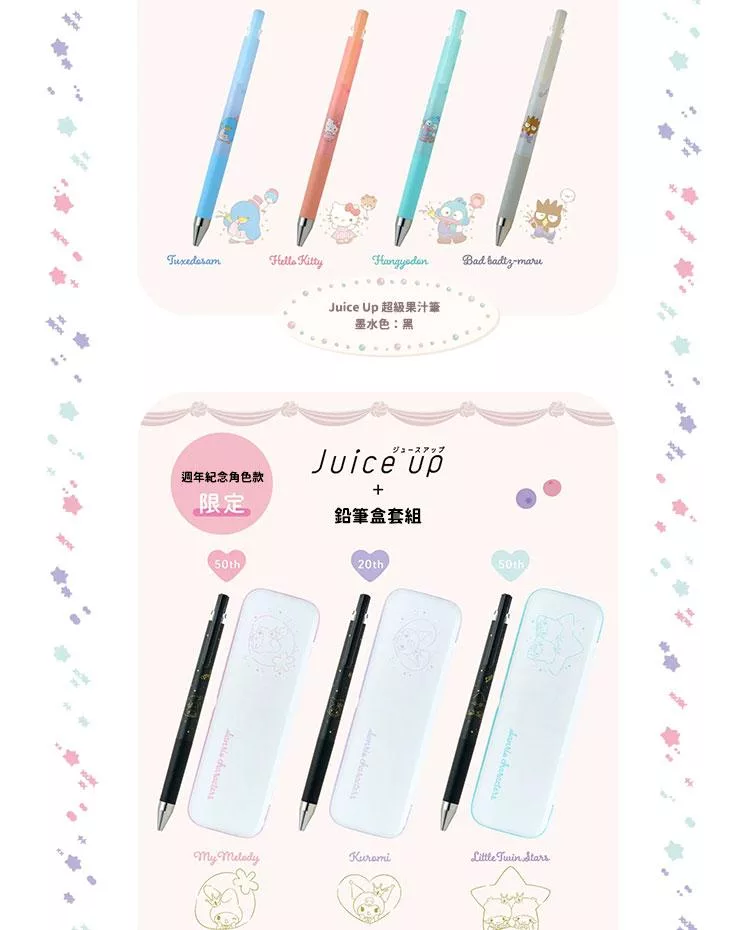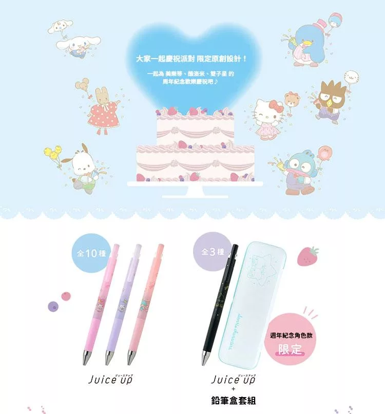 僅為三位週年角色製作限定組合(超級果汁筆+ 限定筆盒)強化收藏價值與限定感。