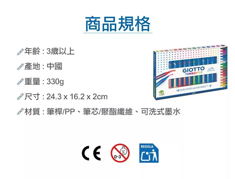 【義大利 GIOTTO】可洗式寶寶彩色筆 (12色)
