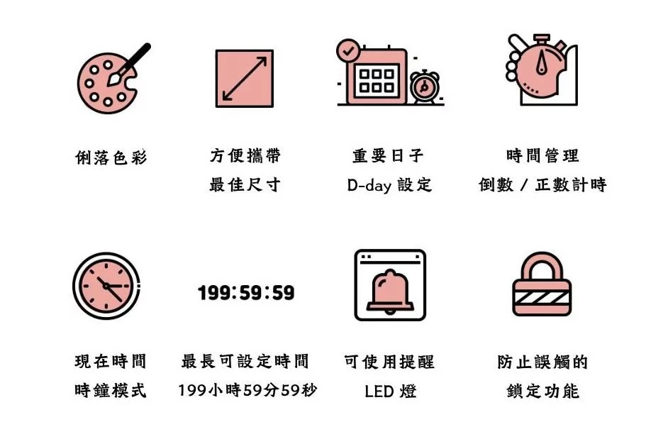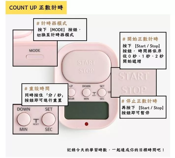 適合情境: 煮食定時(如拉麵3分鐘、水煮蛋8分鐘)/ 烘焙倒數/