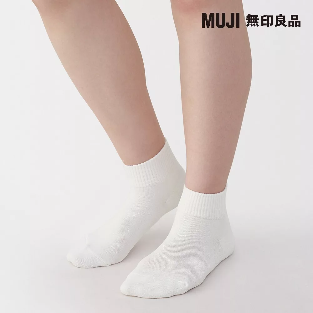 【MUJI 無印良品】女足口柔軟蓬鬆螺紋直角襪23-25cm 黑色
