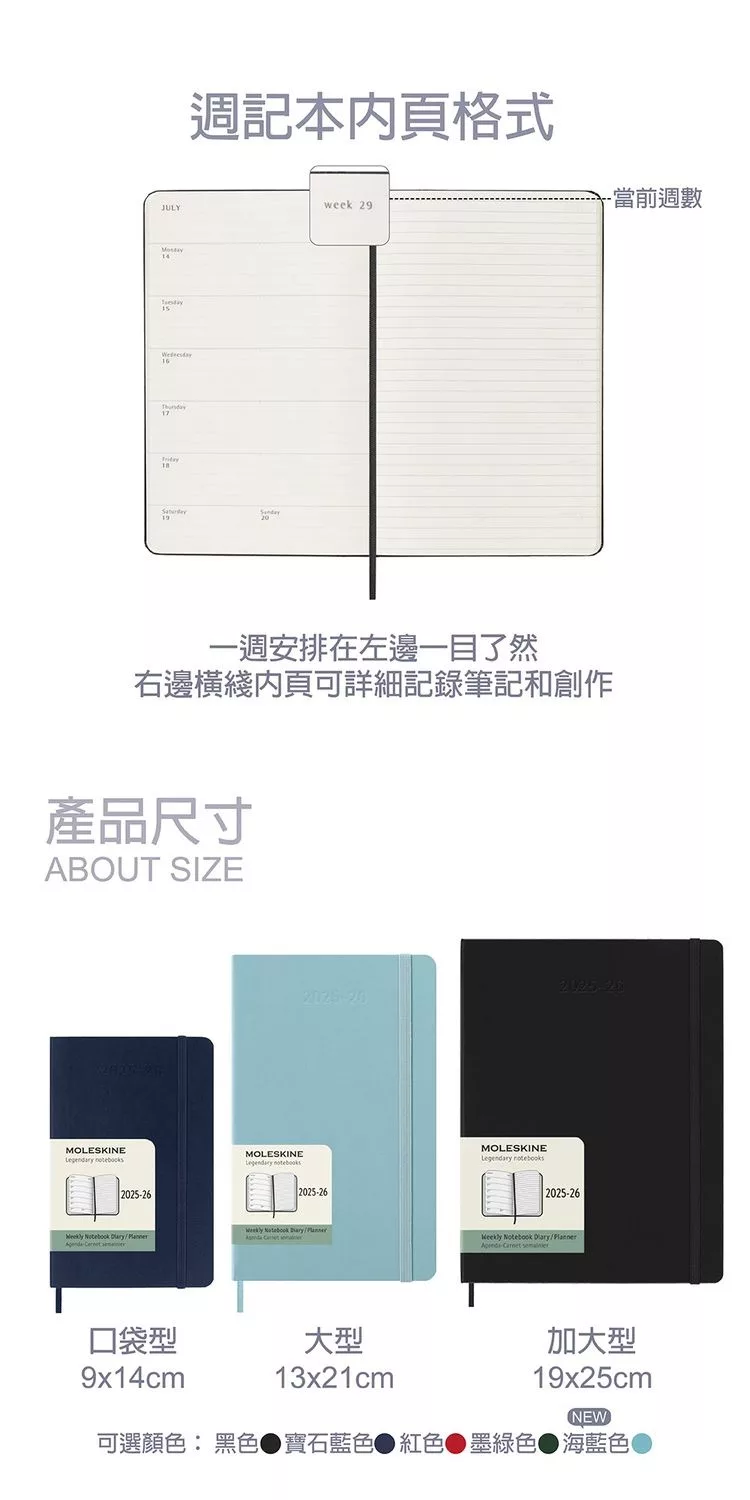 2026 MOLESKINE日記手帳/ 12M/ 硬殼/ L型/ 寶藍