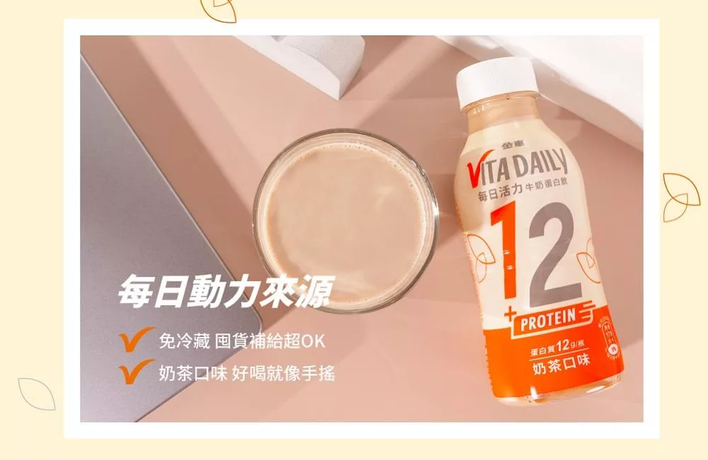 【金車】VitaDaily每日活力牛奶蛋白飲-奶茶口味(無加糖)350ml-24罐/箱