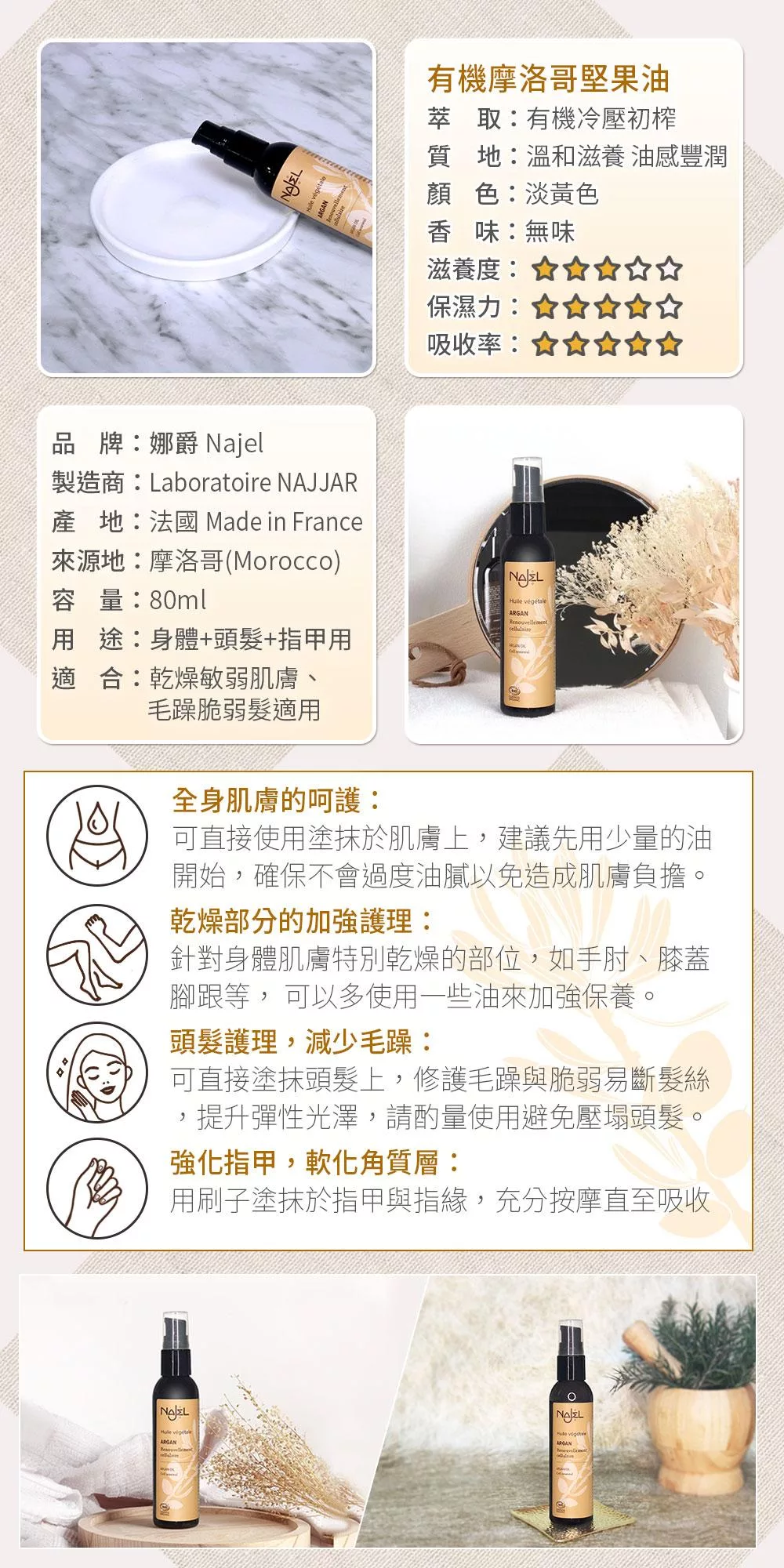 法國NAJEL有機摩洛哥堅果油80ml(身體+頭髮+指甲用)