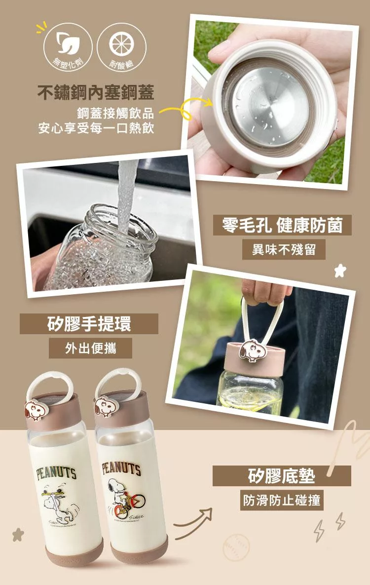 【美國康寧】Snapware SNOOPY 露營趣 提把隨行玻璃杯710ml