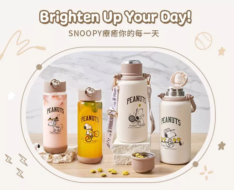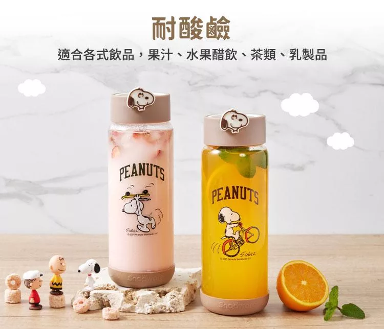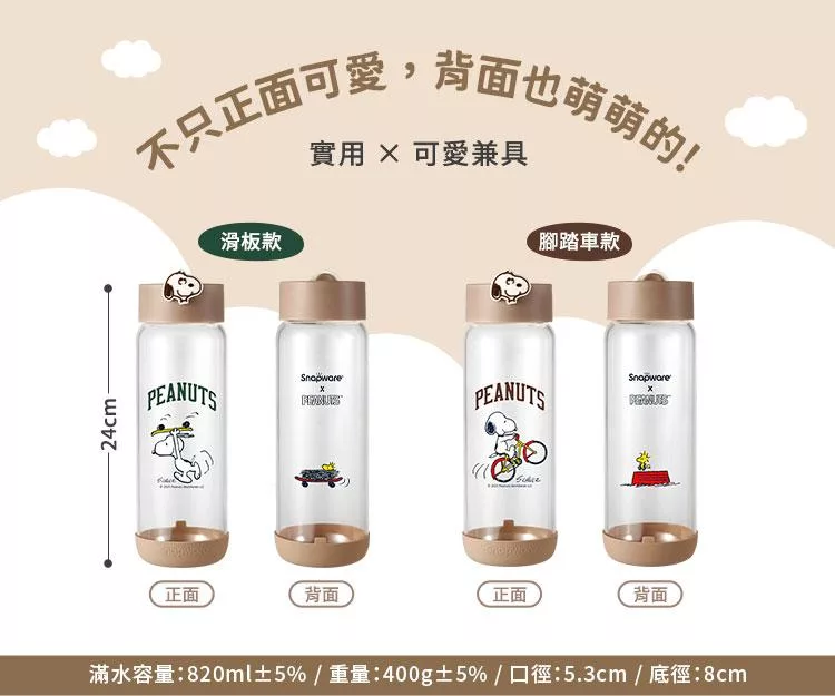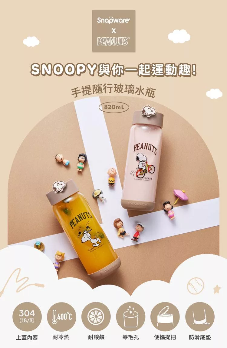 【美國康寧】Snapware Snoopy Sport手提隨行玻璃瓶820ml 腳踏車款