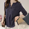【MsMore】韓國妙齡佳人好感度知性條紋上衣#106754XL深藍