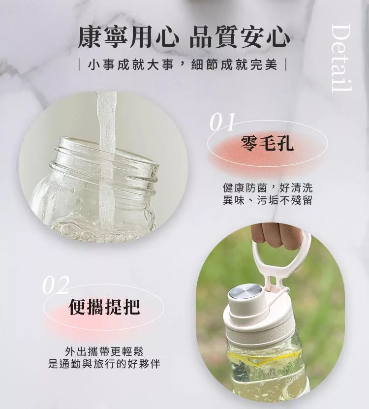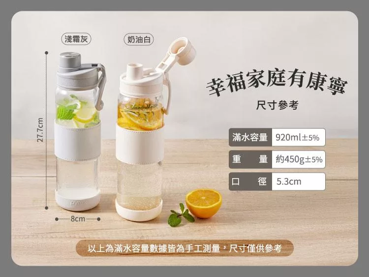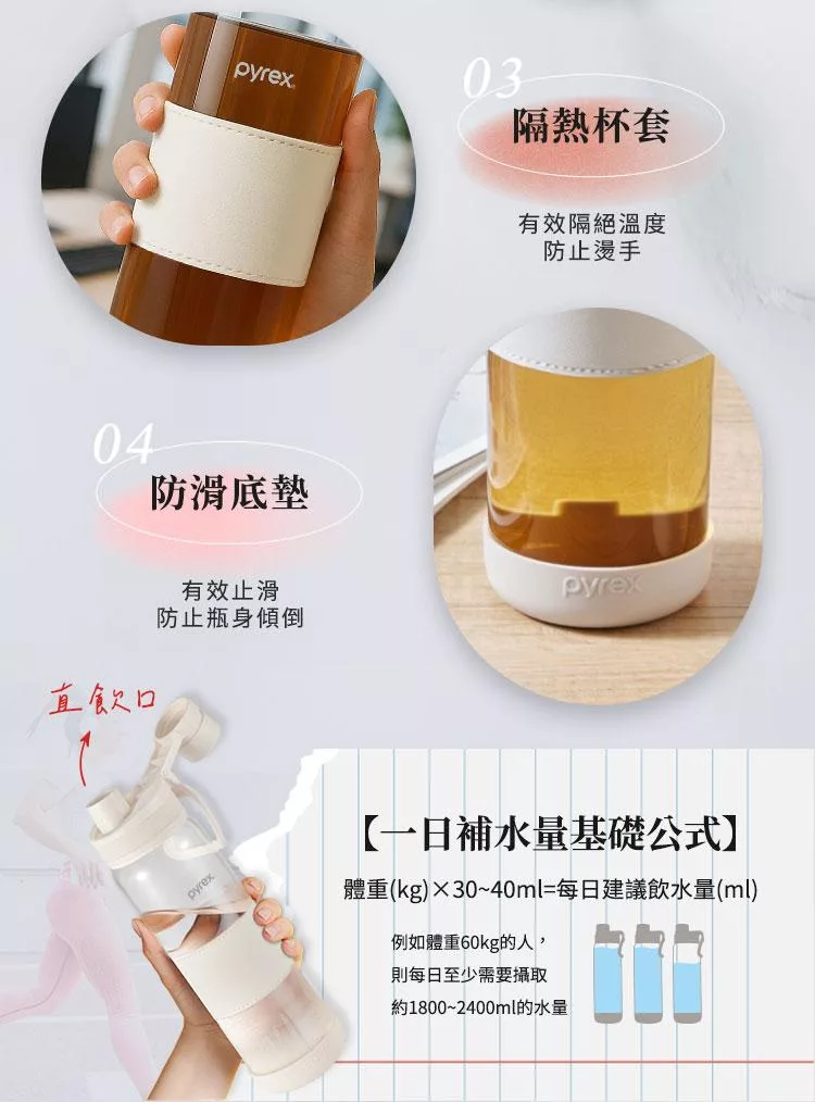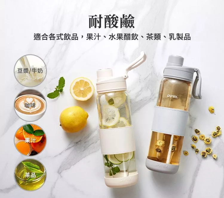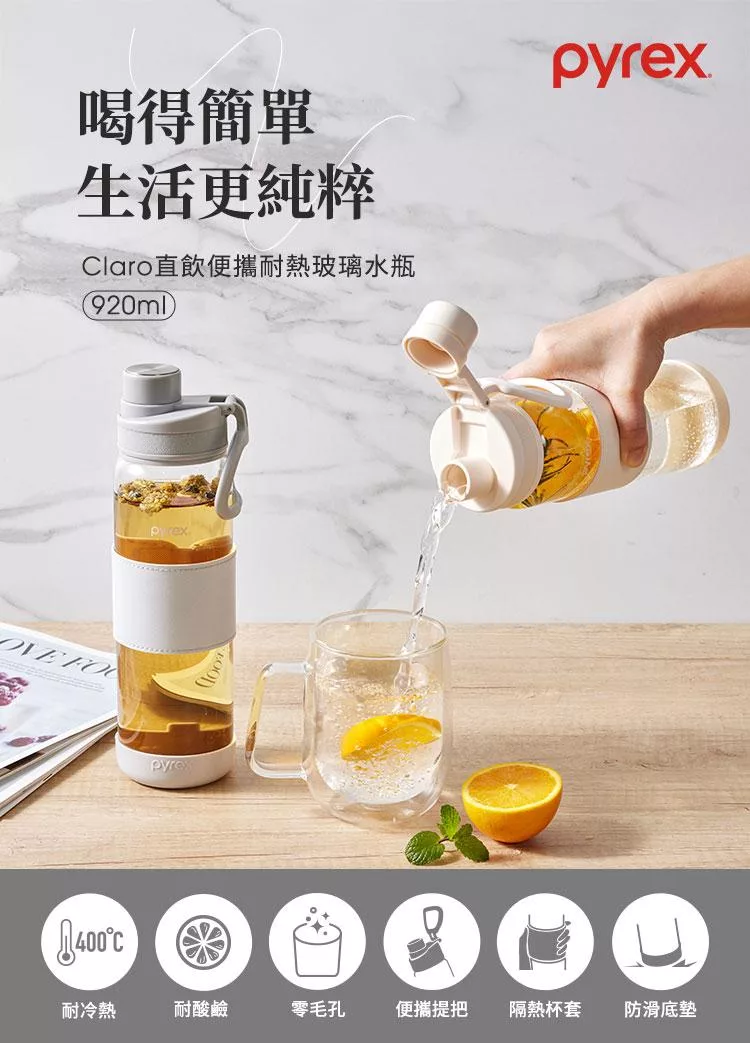 【美國康寧】Claro直飲便攜耐熱玻璃水瓶920ML 奶油白