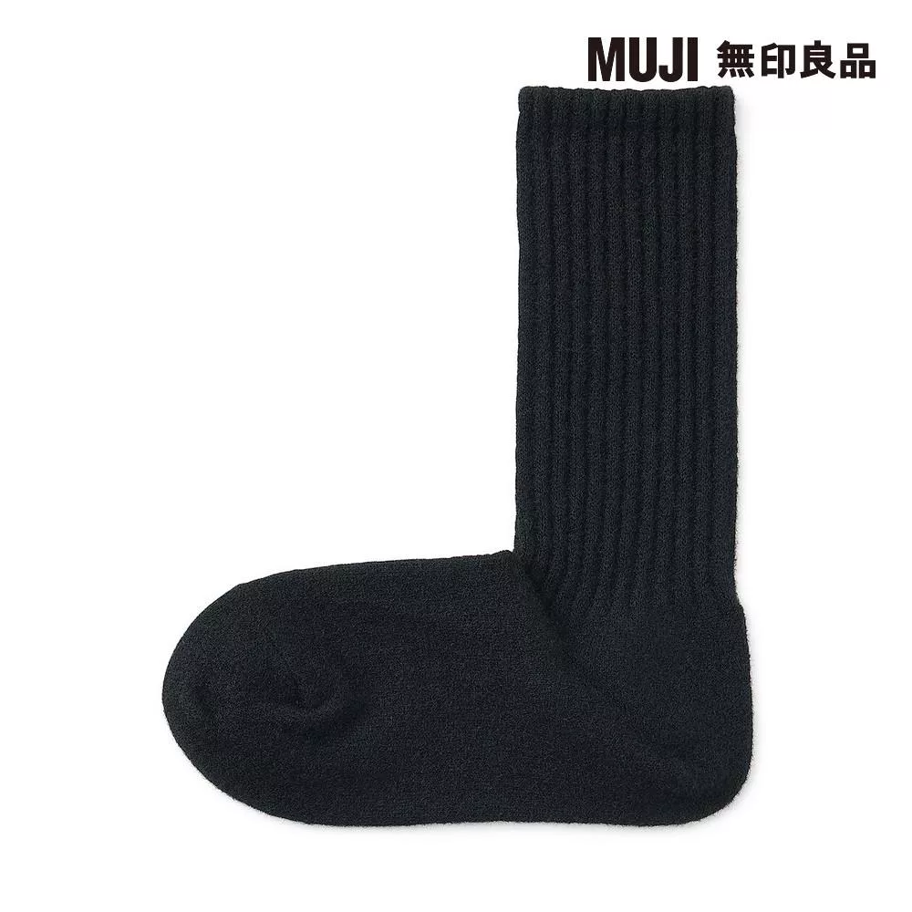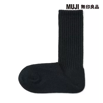 【MUJI 無印良品】女足口柔軟蓬鬆螺紋直角襪23-25cm 黑色