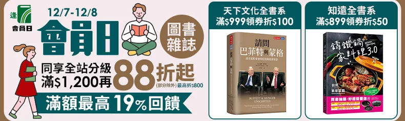 下列商品購買後博客來不提供10天的猶豫期,請務必詳閱商品說明並再次確認確有購買該項商品之需求及意願時始下單購買,有任何疑問並請先聯繫博客來客服詢問:
