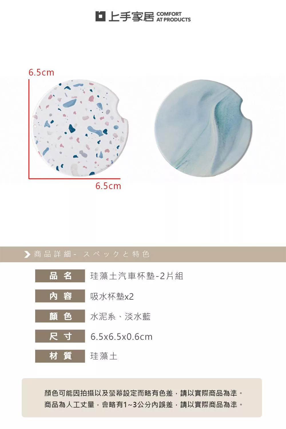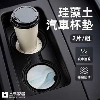 【上手家居】珪藻土汽車杯墊-2片組(吸水墊/車用杯墊/車用水杯墊/珪藻土杯墊) 水泥系
