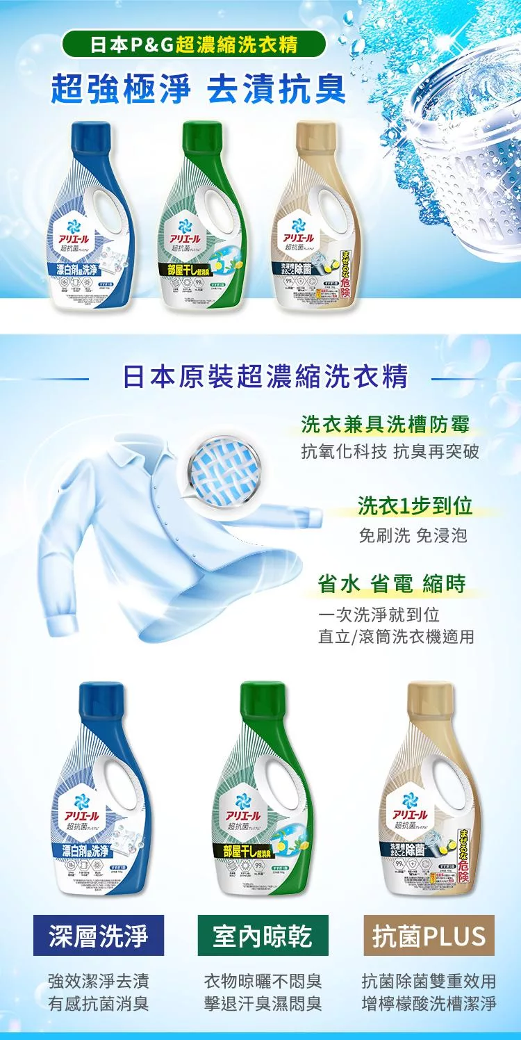 日本 P&G Ariel 超濃縮清新除臭洗衣精 深層抗菌 (藍色) 700g*3入組