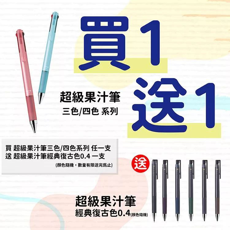 買三色/四色果汁筆任1支送經典復古色0.4一支(顏色隨機出)