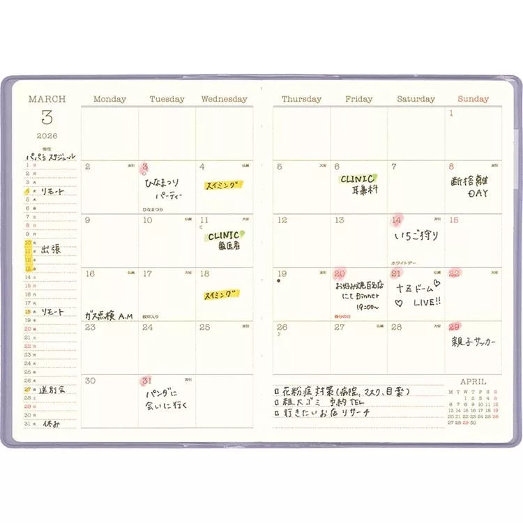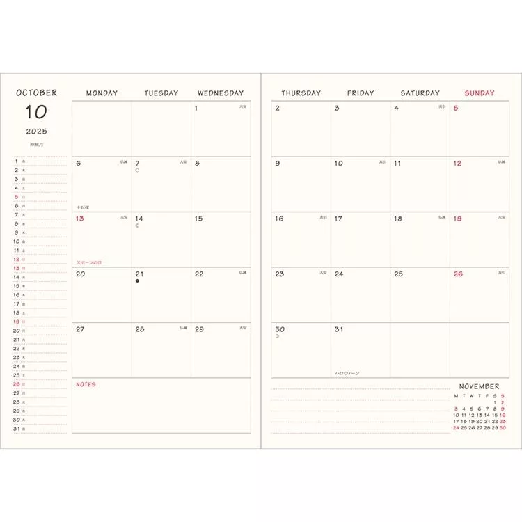 MIDORI POCKET DIARY 2026手帳長形(月間)- 歐吉桑