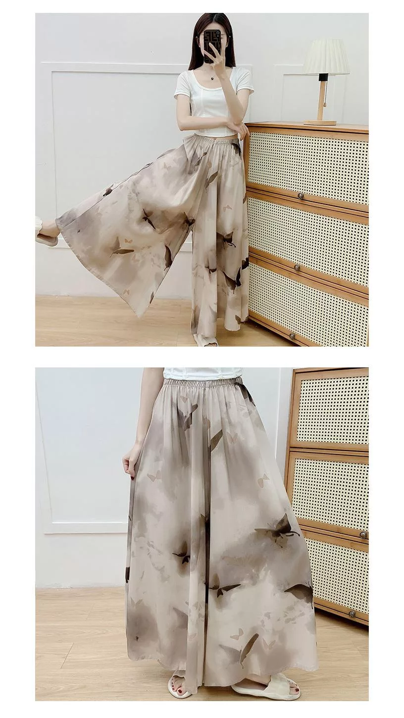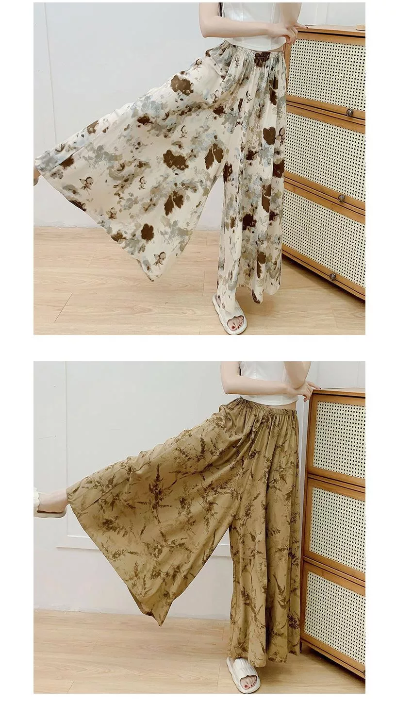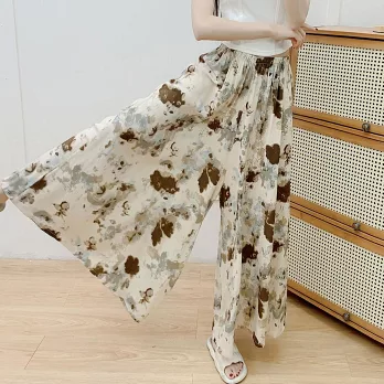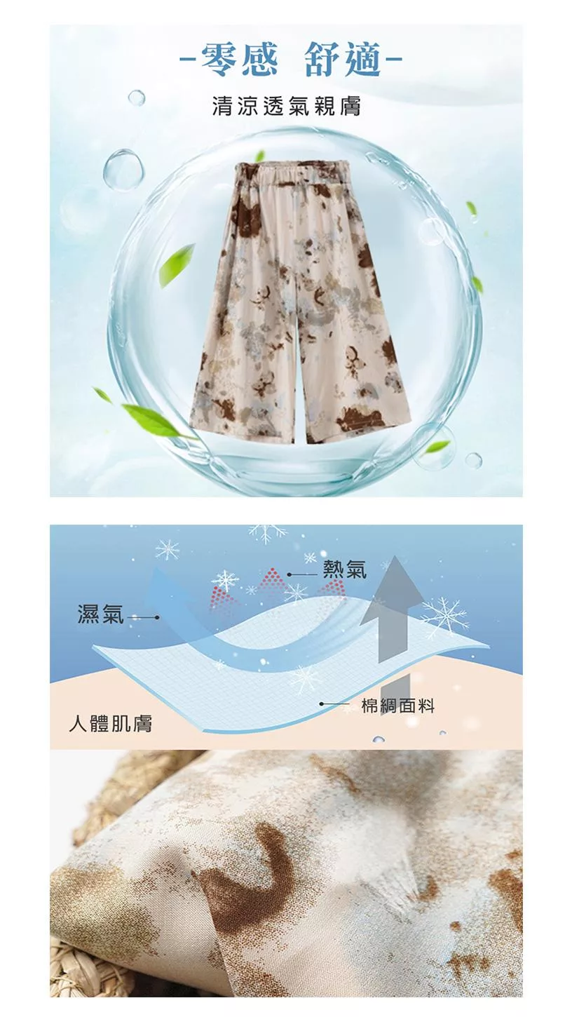 【AnZa】中大尺碼棉綢輕薄涼感闊腿褲褲裙(3色) FREE 卡其小草