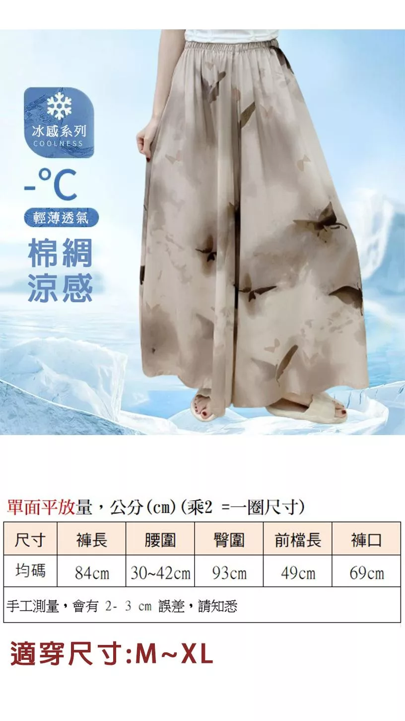 【AnZa】中大尺碼棉綢輕薄涼感闊腿褲褲裙(3色)     FREE 卡其小草