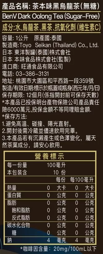 • 【內容物成份】水、烏龍茶、黑茶、抗氧化劑(維生素C)