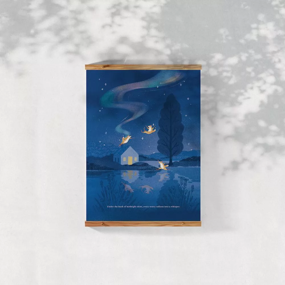 在午夜靜謐的天空下,所有煩憂都變得輕柔如耳語。