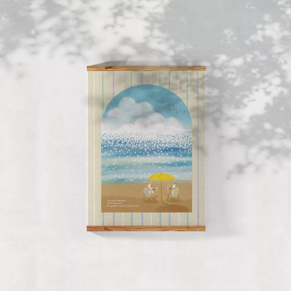 午後的金光靜靜灑落,讓海面柔和地閃爍著。