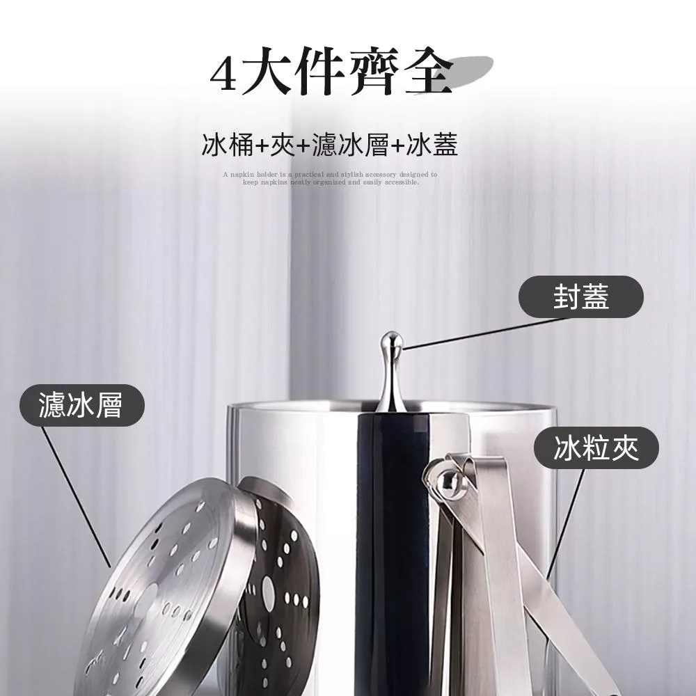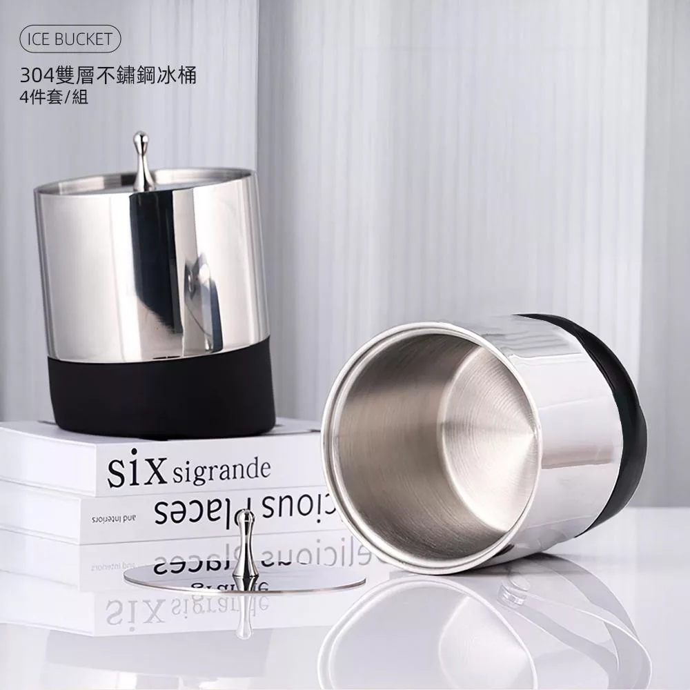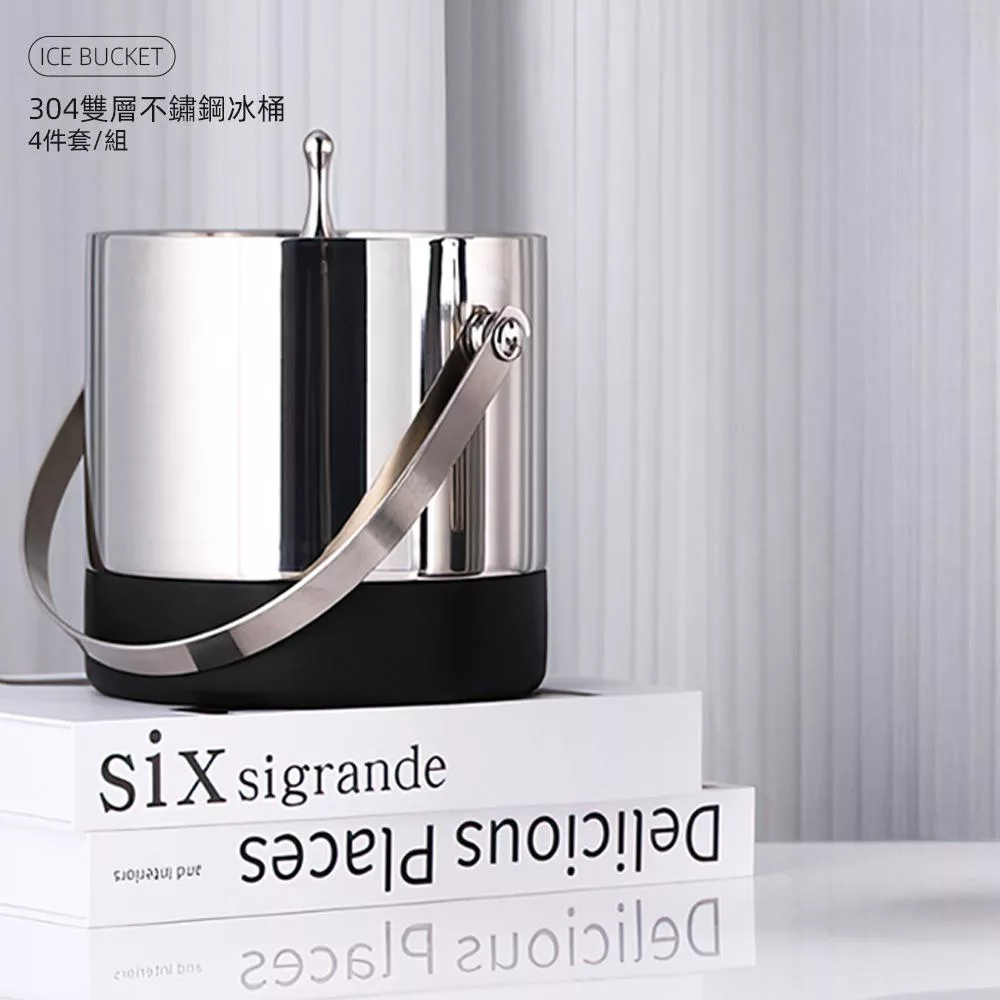 【上手家居】304雙層不鏽鋼冰桶-4件套組(冰桶/冰塊桶/香檳桶/冰鎮桶) 提把款