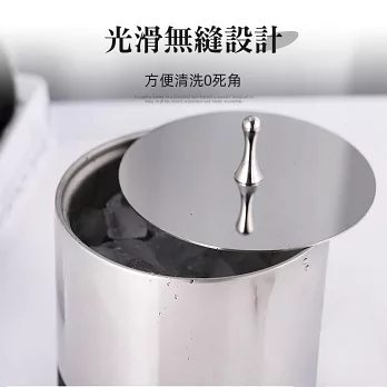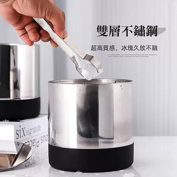 這款304雙層冰桶,採不鏽鋼內外桶體結構,有效延長保冰時間。濾冰層設計避免夾出積水,冰夾、冰蓋收納齊全。矽膠防滑底座,操作穩定不卡手,是聚會桌上的質感亮點。