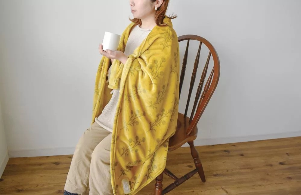 【日本現代百貨】arne法蘭絨 輕盈柔軟保暖毛毯 ‧ 花草(黃)