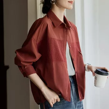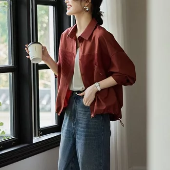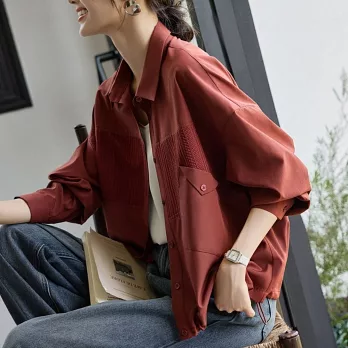 【MsMore】 安可拉紅色肌理拼接抽繩襯衫風衣長袖外套# 125910 M 紅色