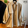 【初色】韓系簡約寬鬆純色排釦翻領長袖中長款風衣外套女外套-共2色-16470(M-2XL可選) M 卡其色