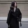 【MsMore】 韓版氣質大衣寬鬆長款毛呢大外套# 126605 M 黑色