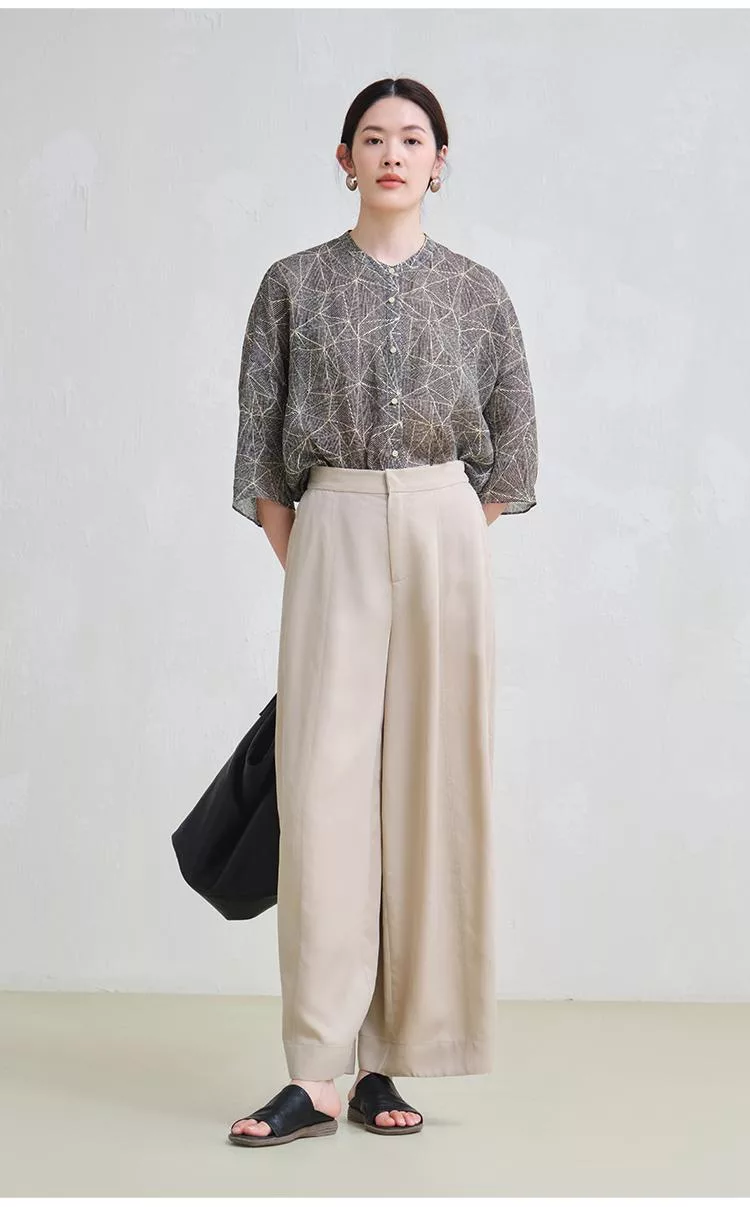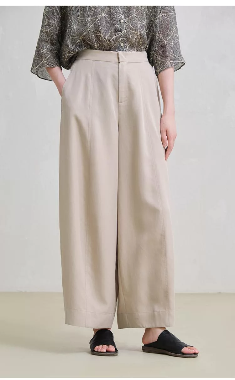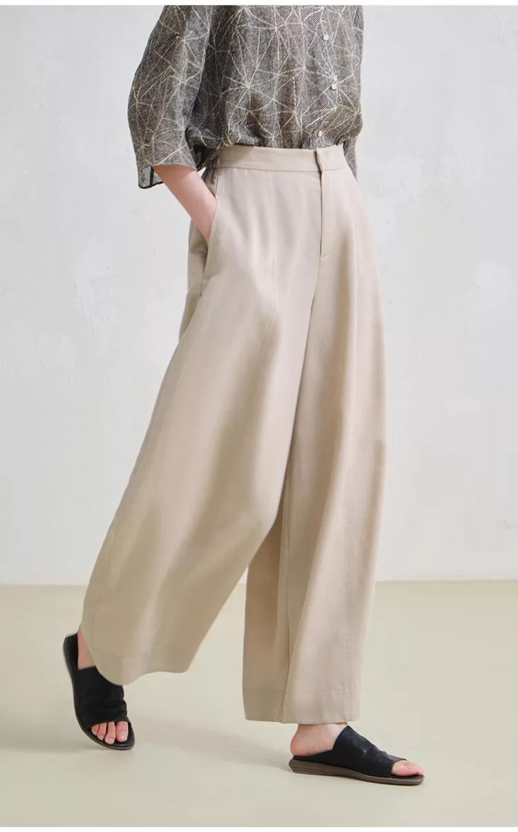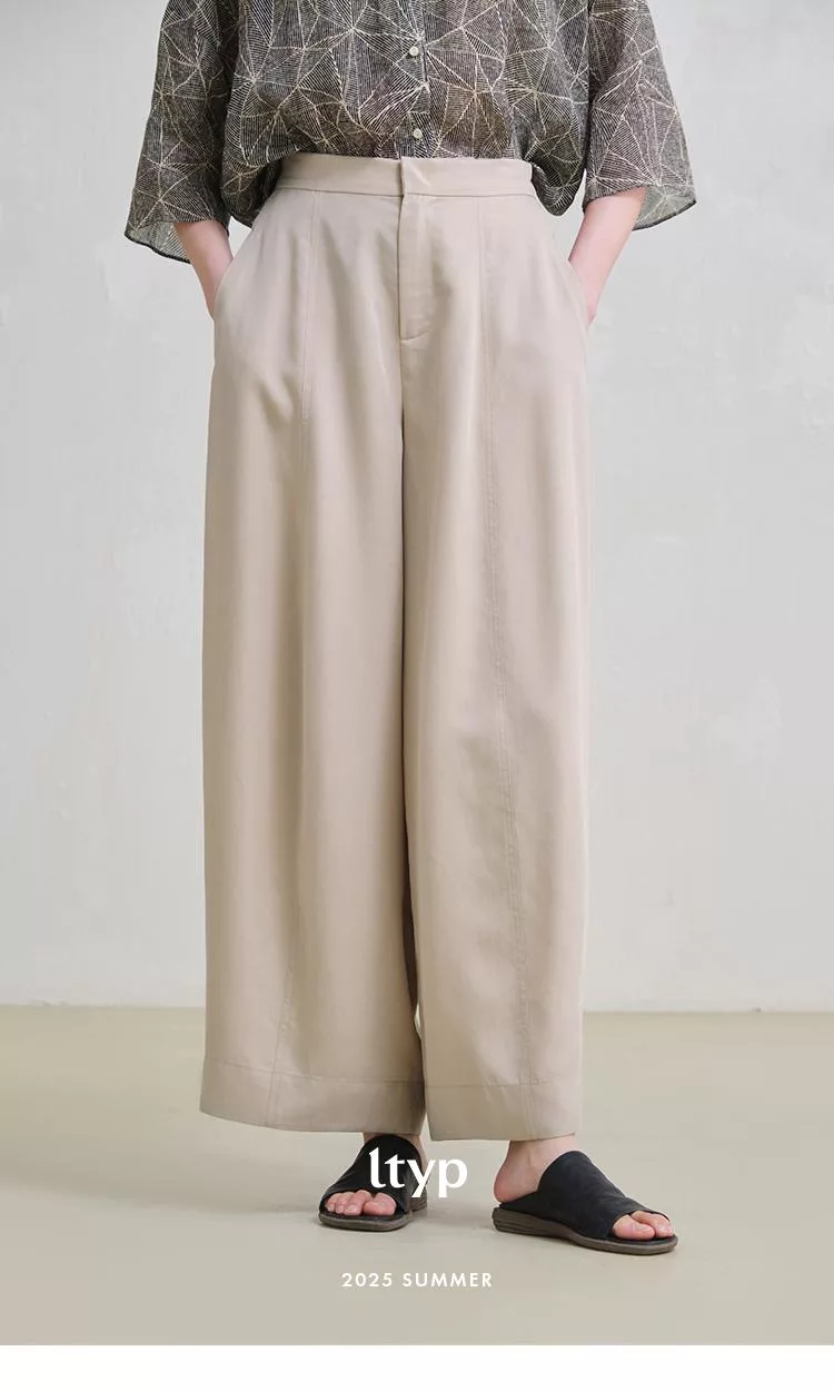 ltyp旅途原品 天絲亞麻立體O型褲 文藝通勤鬆弛闊腿休閒褲女夏季 M L M 燕麥色