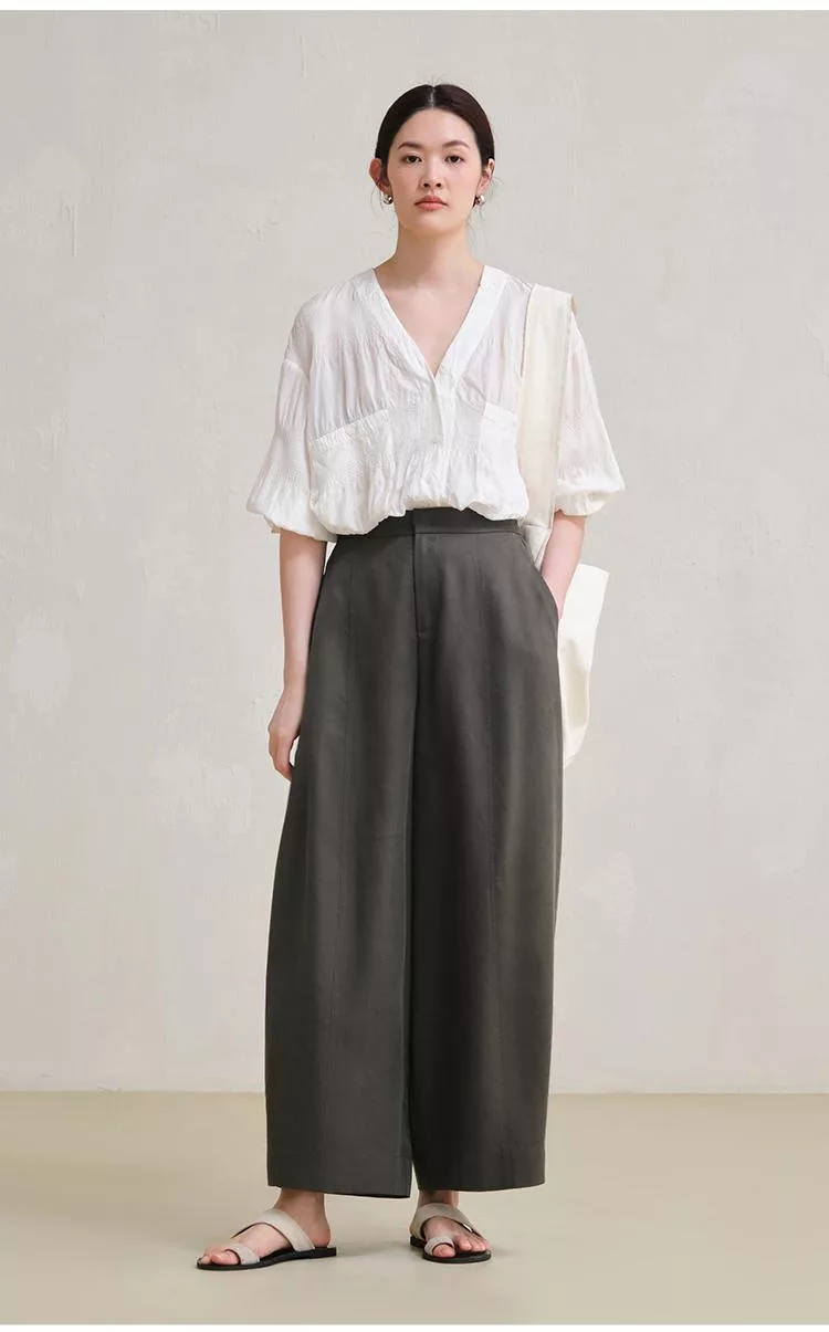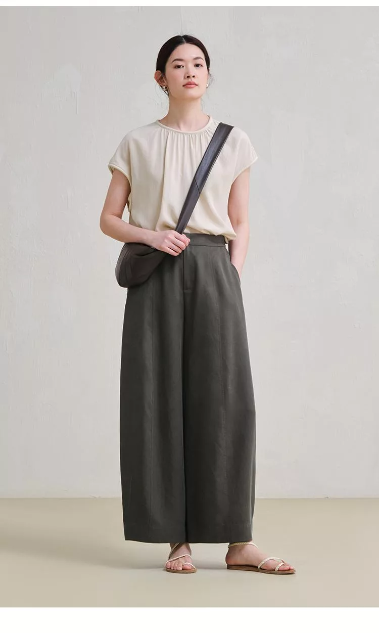 ltyp旅途原品 天絲亞麻立體O型褲 文藝通勤鬆弛闊腿休閒褲女夏季 M L  M 燕麥色