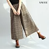 【AMIEE】格紋毛呢休閒七分寬褲(KDP-6038) FREE 咖啡色