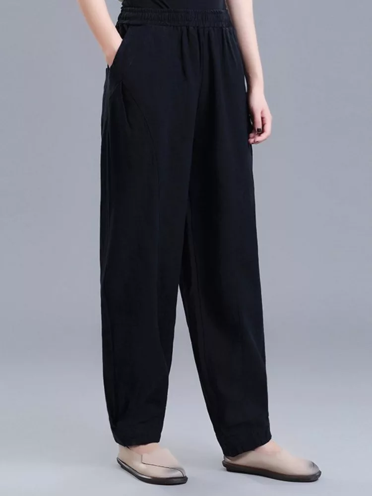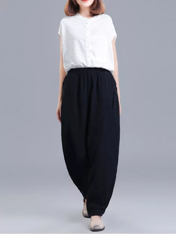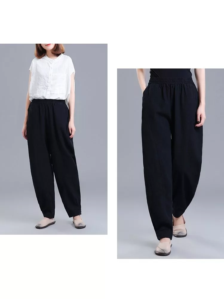 麻燈籠褲復古寬鬆蘿蔔老爹褲高腰棉麻哈倫長褲#