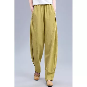 【ACheter】 麻燈籠褲復古寬鬆蘿蔔老爹褲高腰棉麻哈倫長褲# 126041 M 米白色