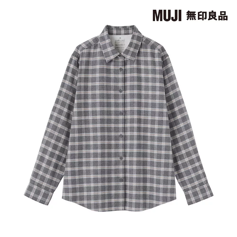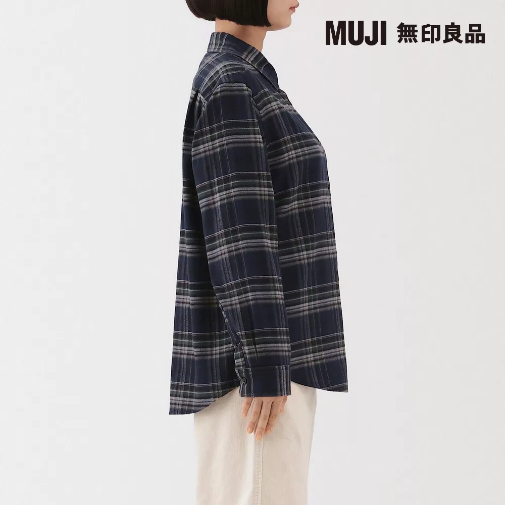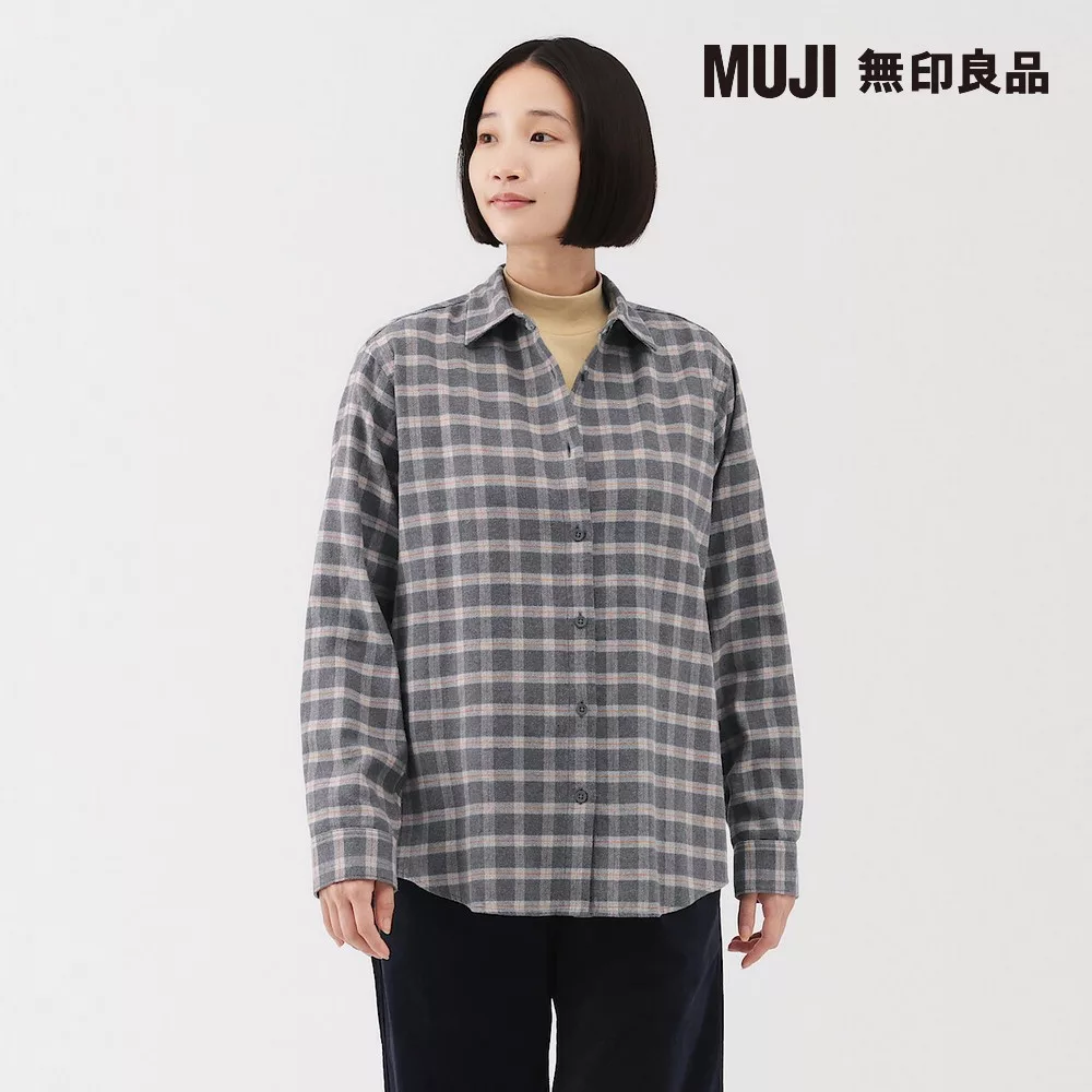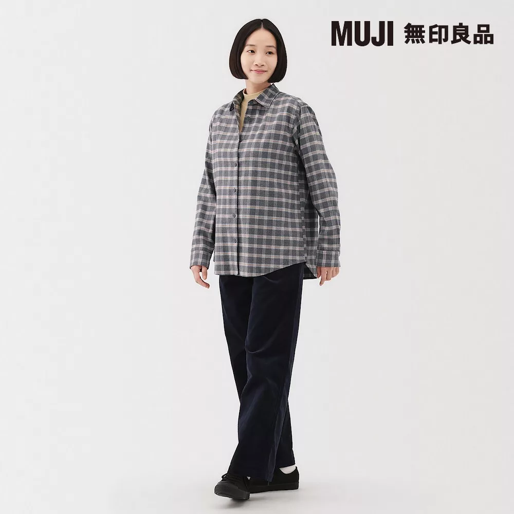 【MUJI 無印良品】女雙面起毛法蘭絨立領長袖襯衫 L 象牙白