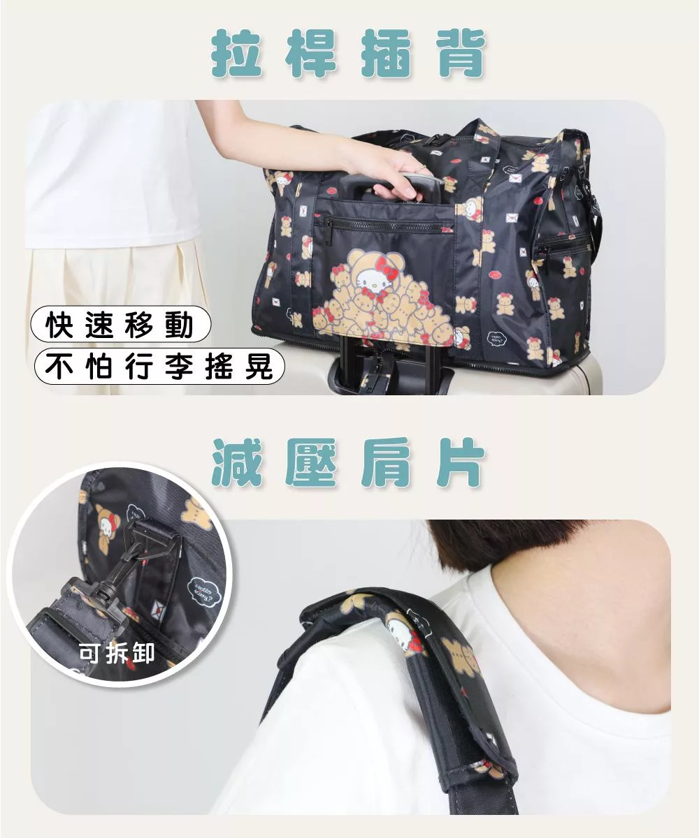 murmur 完美折疊旅袋(斜紋電繡)/hellokitty(低調黑)