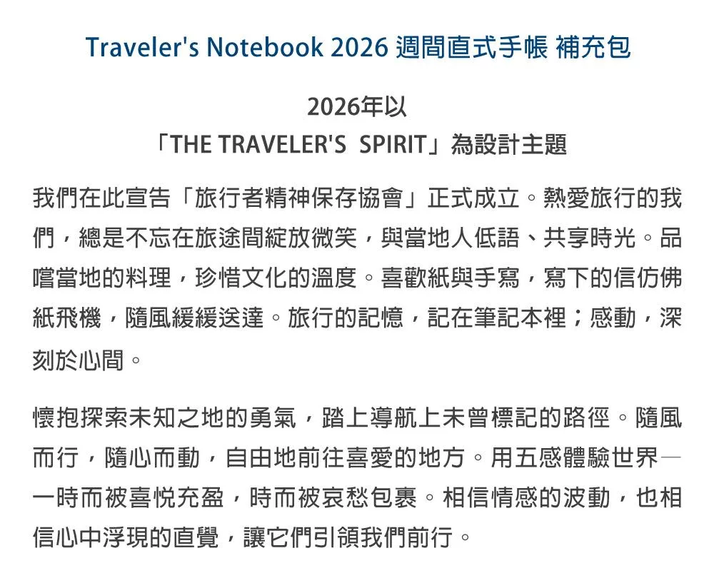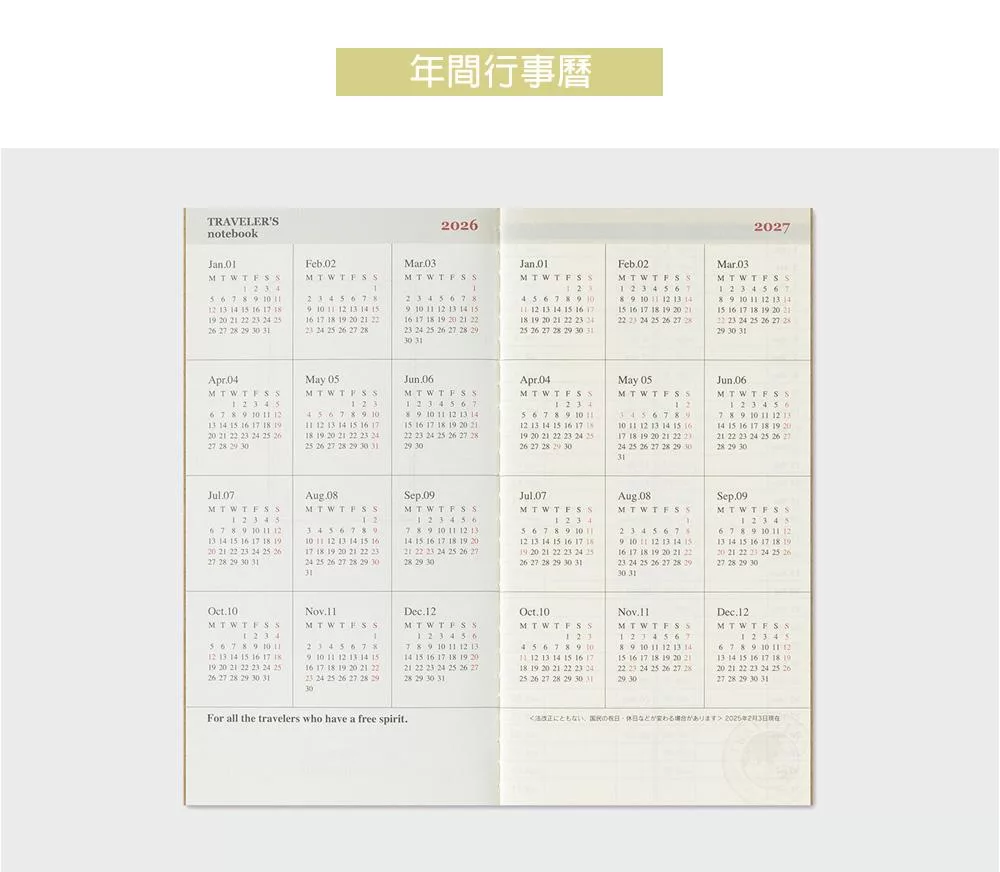 TRC Traveler’s Notebook 2026手帳補充包- 週間