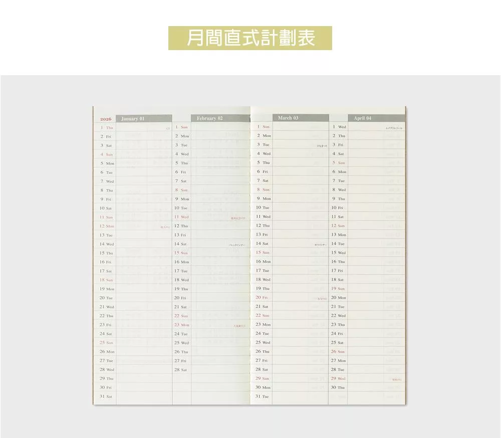TRC Traveler’s Notebook 2026手帳補充包- 週間直式