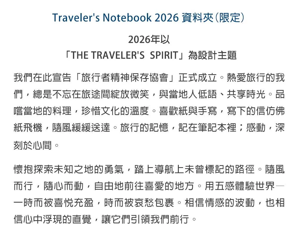 2026年主題為「THE TRAVELER’S SPIRIT」(旅行者精神)