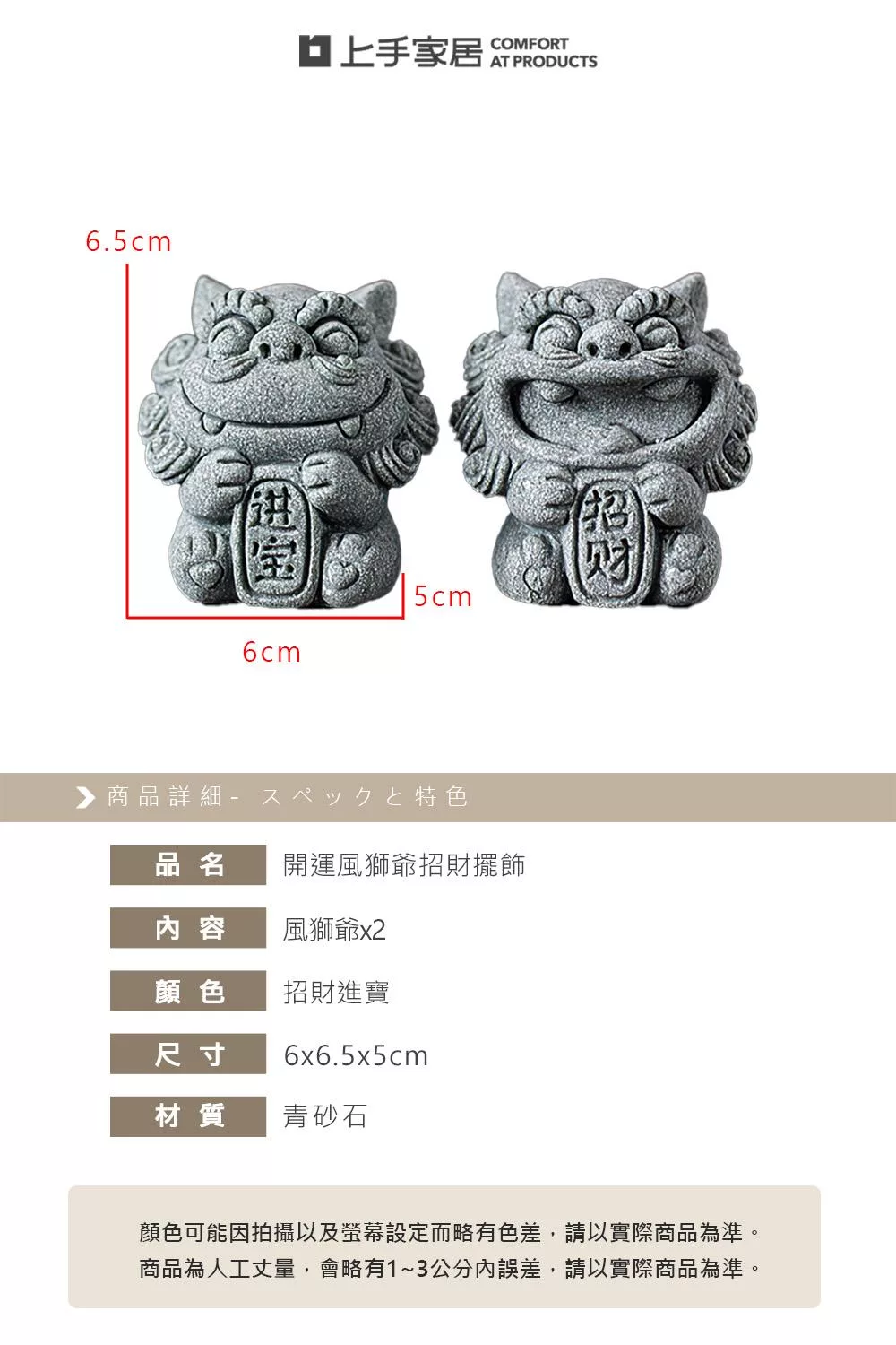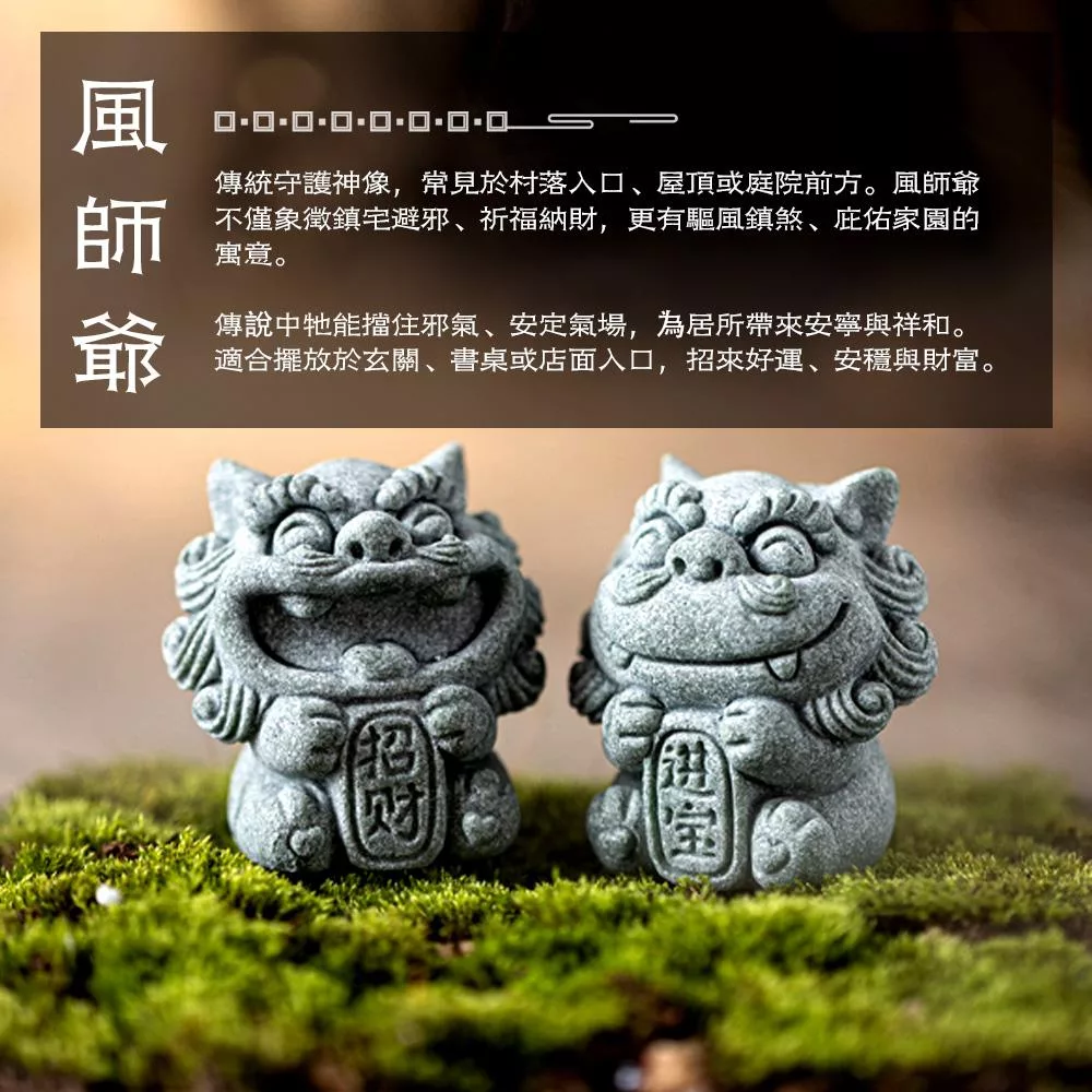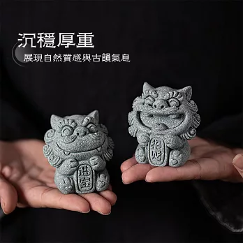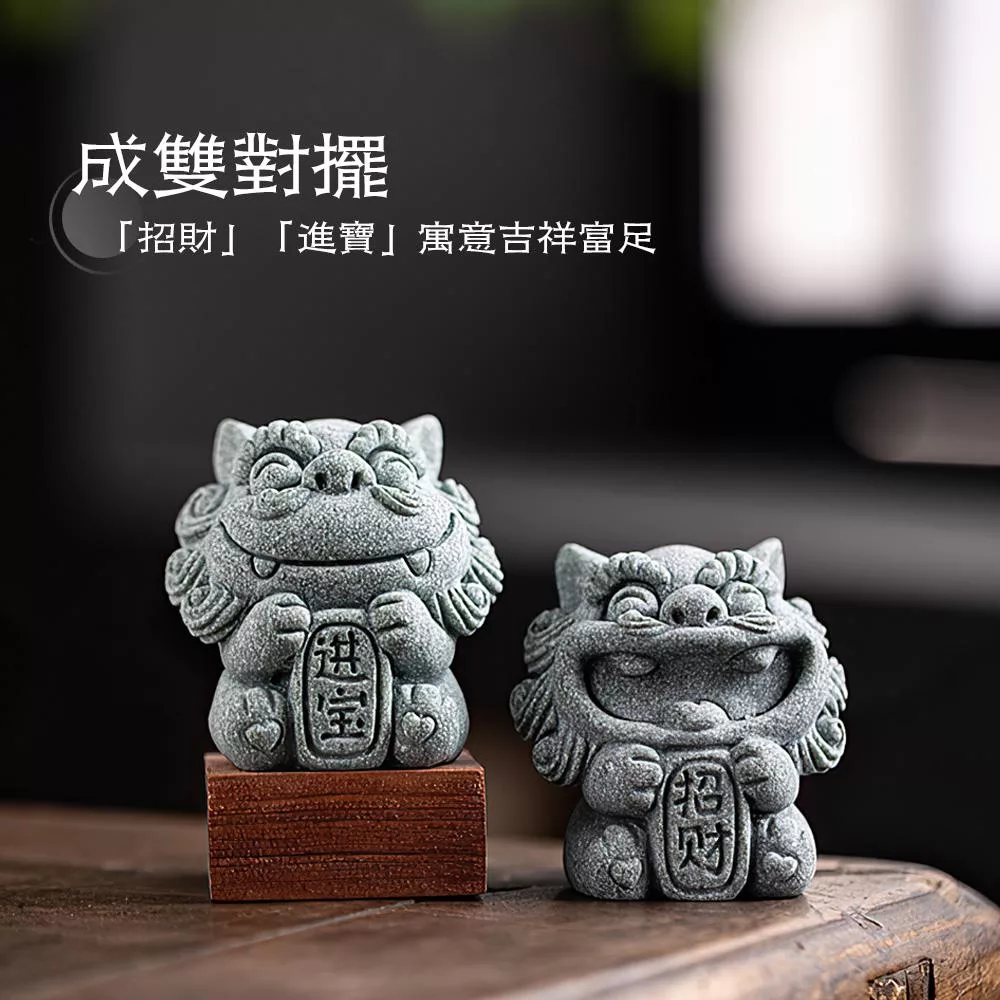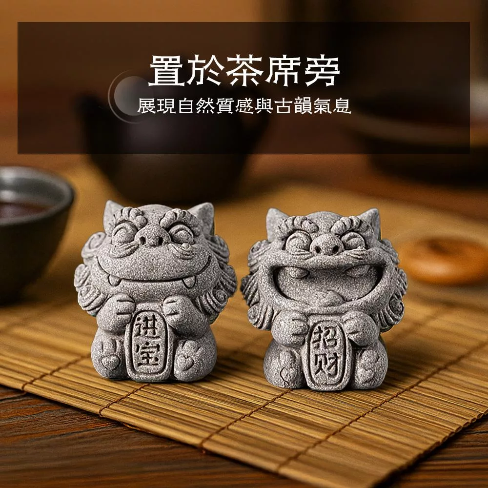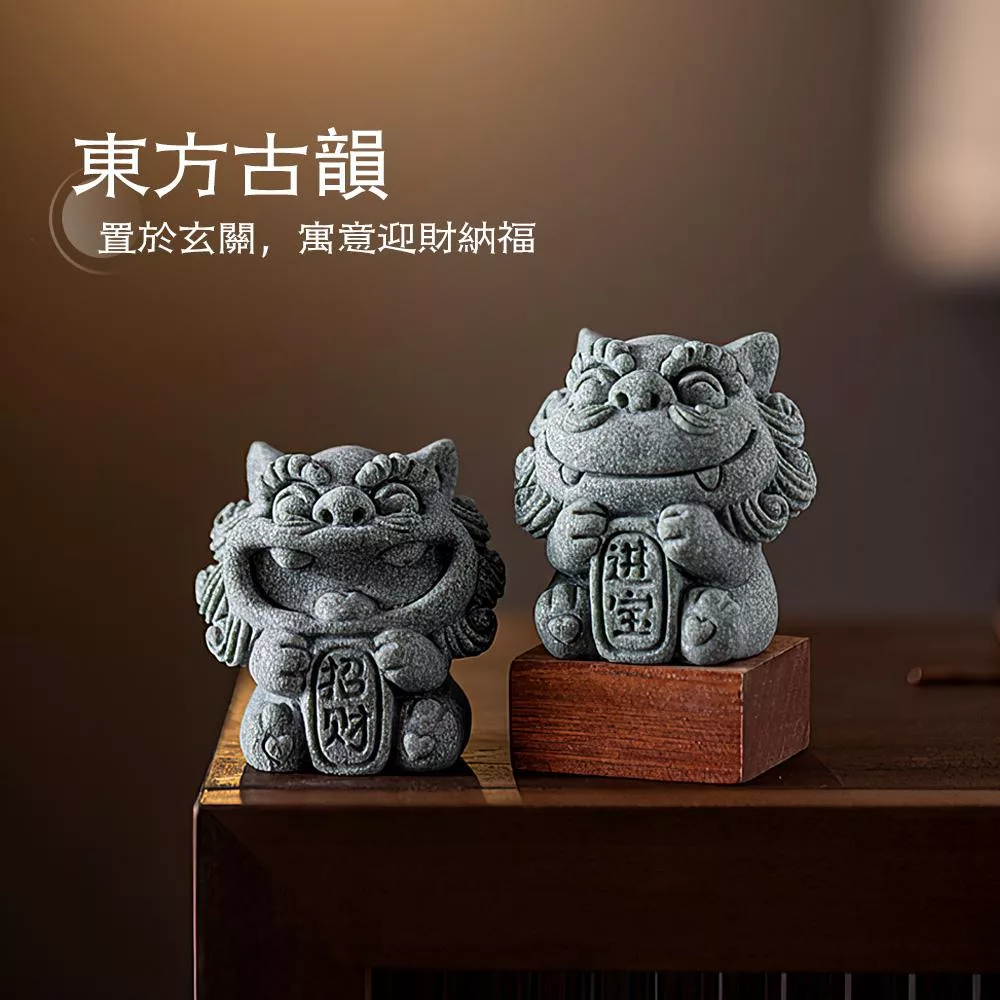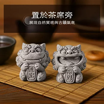 這款開運風獅爺採青砂石打造,沉穩質感中透出古韻氣息。成雙對擺寓意「招財進寶」,能象徵守護家宅、祈福納財。無論放置玄關、書桌、茶席或庭院,都能展現自然韻味,帶來安心祥和。亦適合搭配魚缸或微景觀,營造東方古韻氛圍。