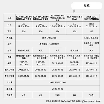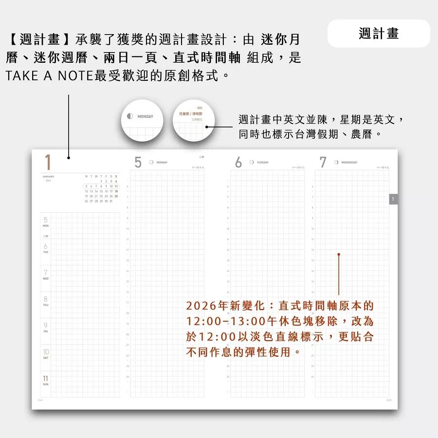 TAKE A NOTE 2026 REGULAR時效日誌 - 台灣假期版 A5