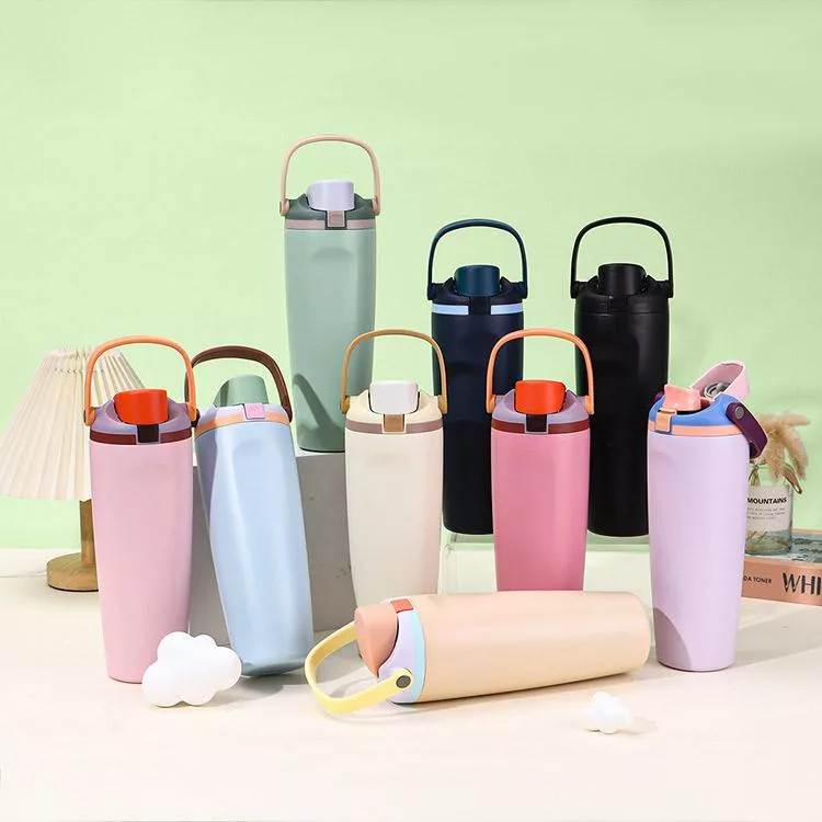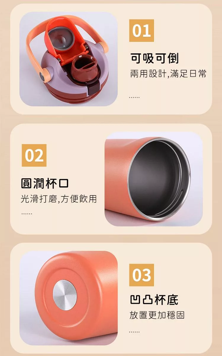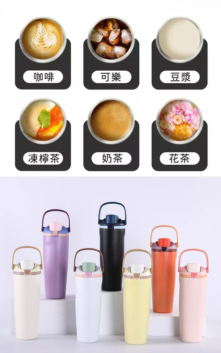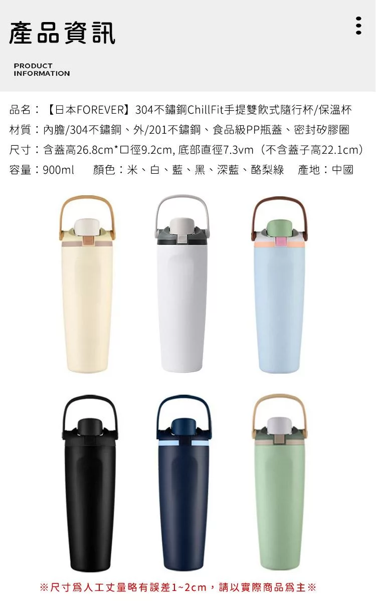 【日本FOREVER】316不鏽鋼ChillFit手提雙飲式隨行杯/保溫杯900ml -米色