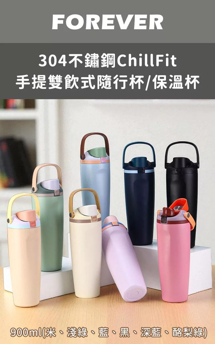 【日本FOREVER】316不鏽鋼ChillFit手提雙飲式隨行杯/保溫杯900ml -深藍色