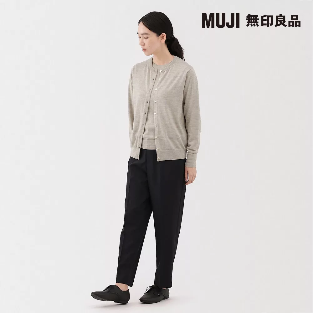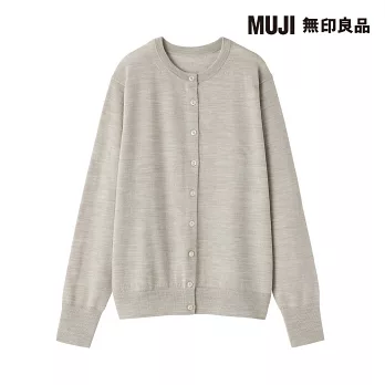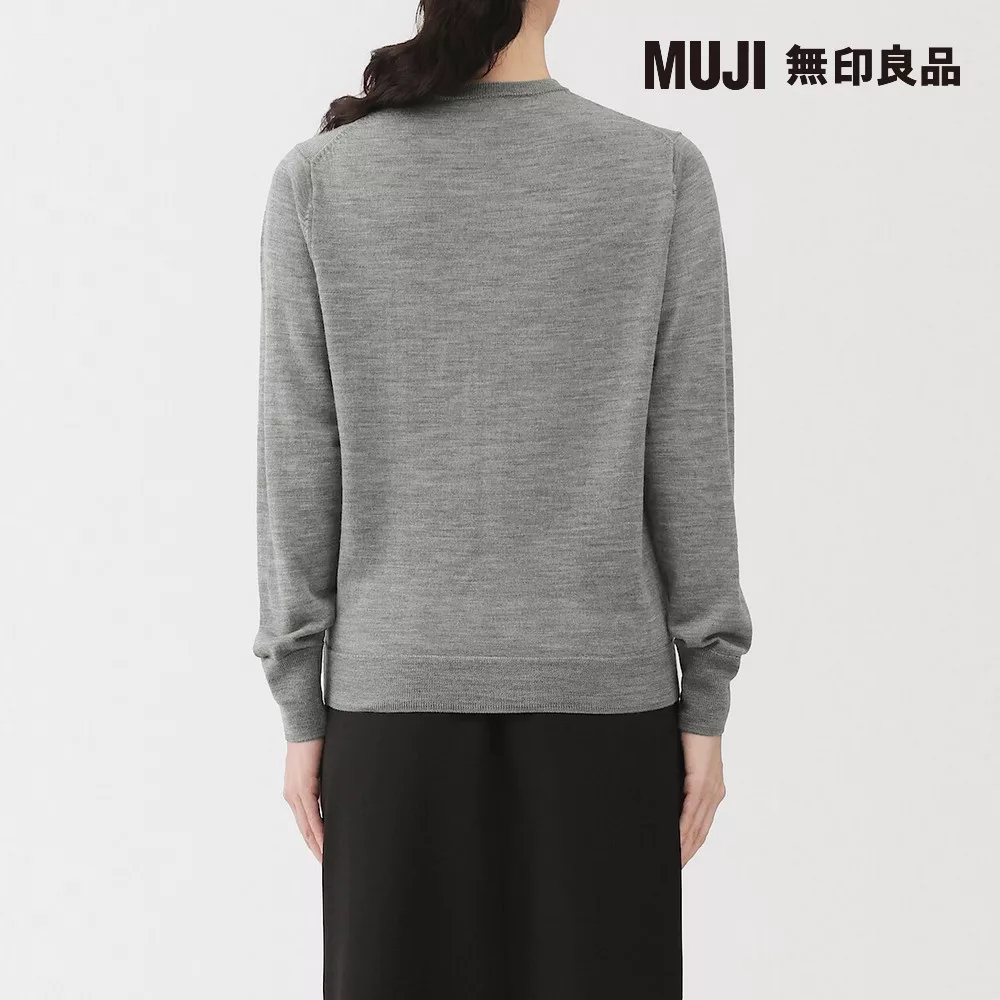 【MUJI 無印良品】女羊毛可水洗高密織圓領針織衫 L 粉米