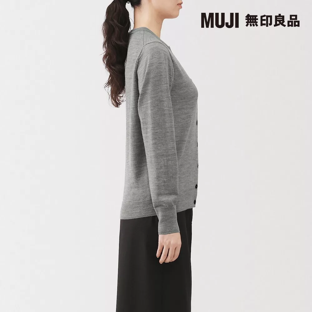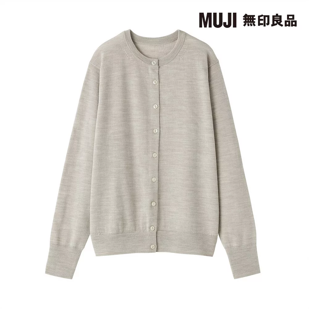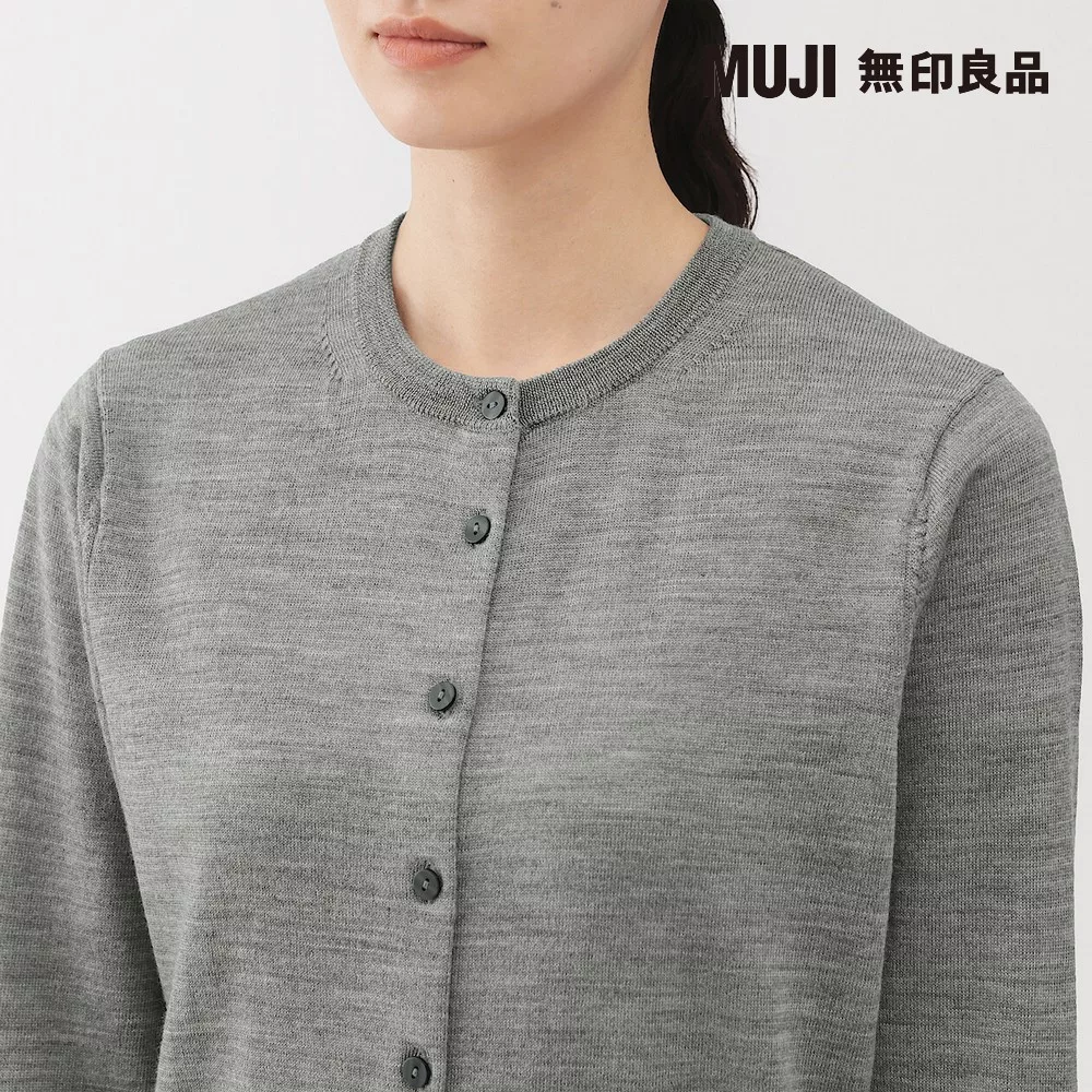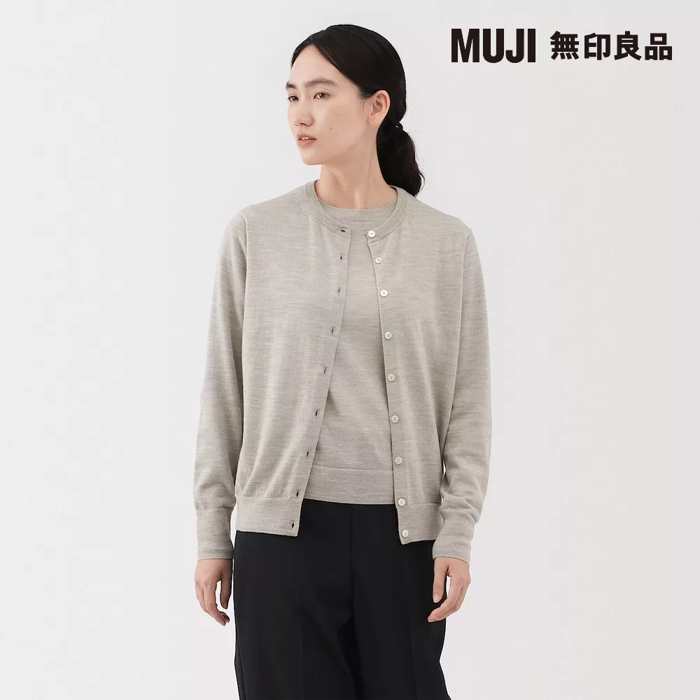 【MUJI 無印良品】女水洗羊毛高密織POLO開襟衫 L 粉米
